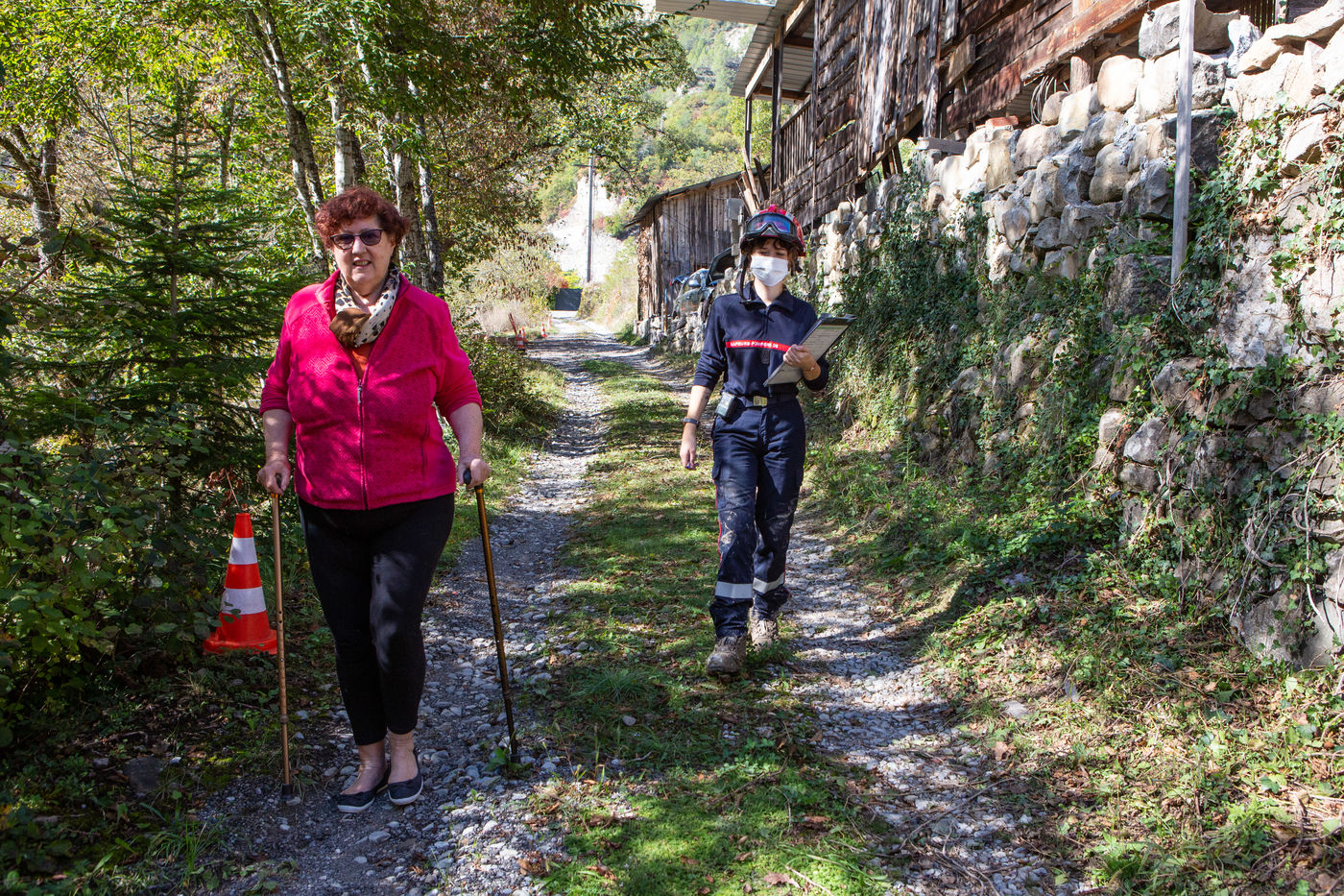 Une equipe restreinte de pompiers volontaires aide la population sinistrée à Clans dans la vallée de la Tinée.