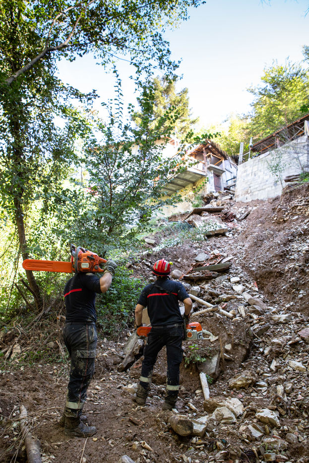 A small team of volunteer firefighters helps the affected population in Clans in the Tinée valley. Collapsed houses, landslides, cut roads, torn networks, shocked population. They are present every day as close as possible to the population to help, listen and find solutions according to priorities. They are the closest and the most responsive in these remote regions of the Alpes-Maritimes in the heart of the disaster.