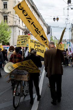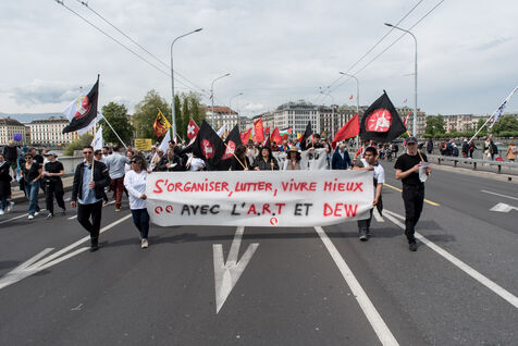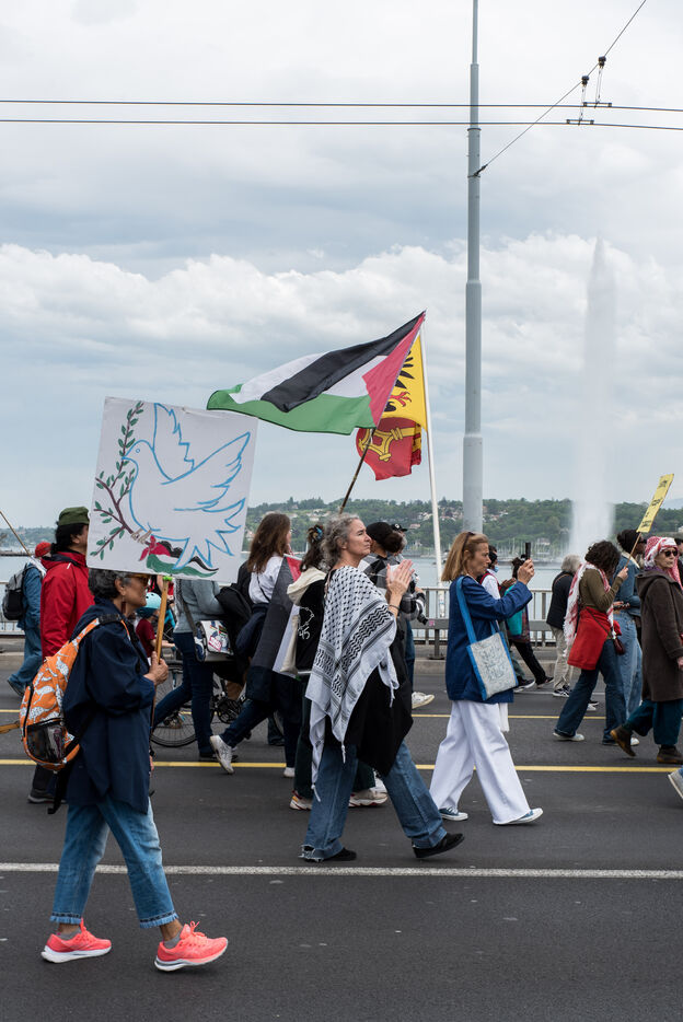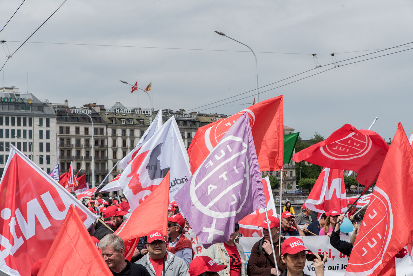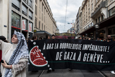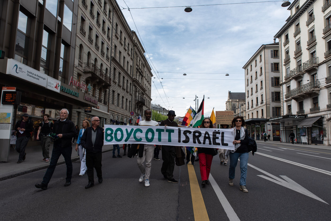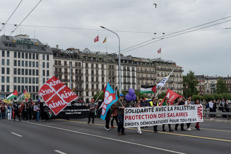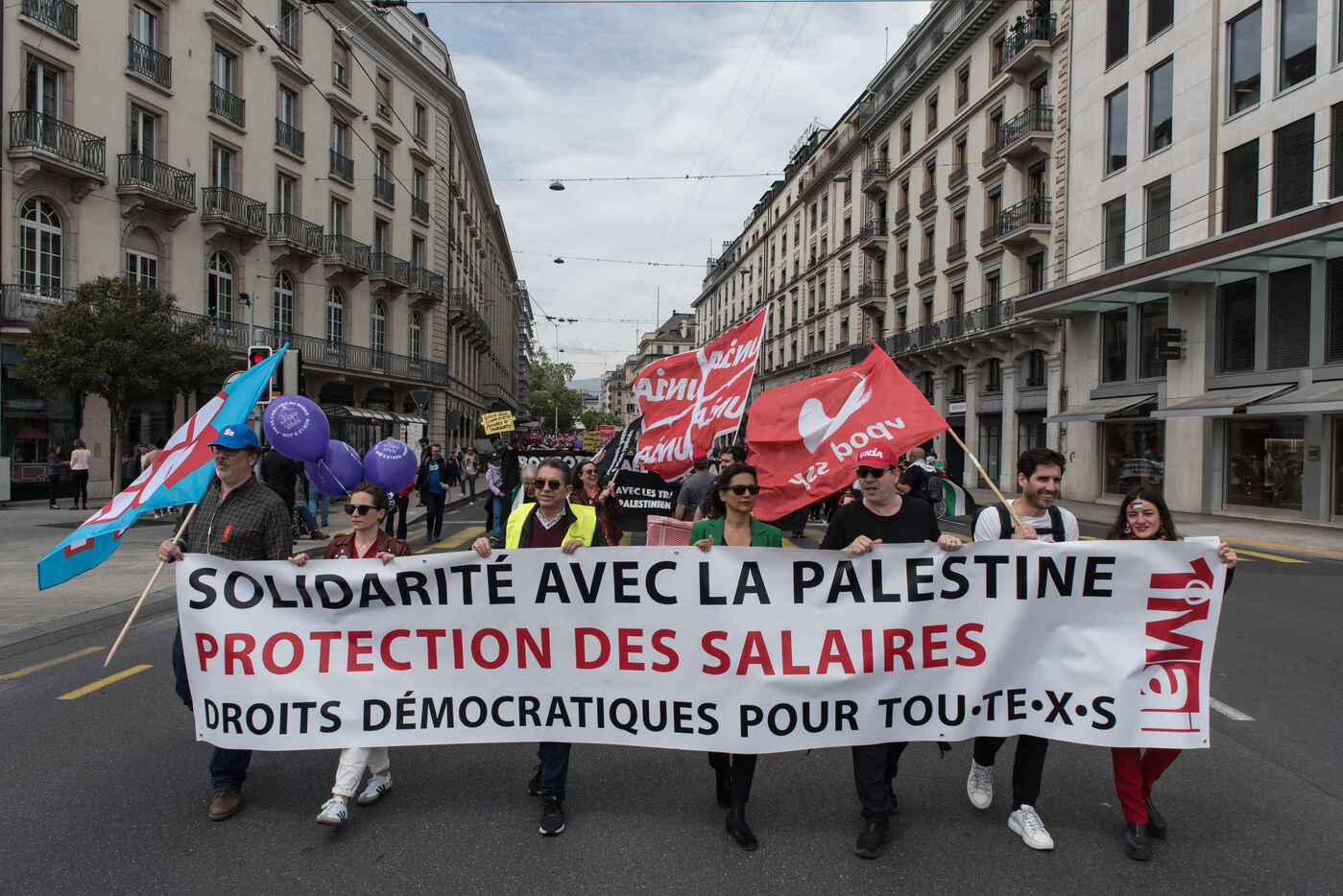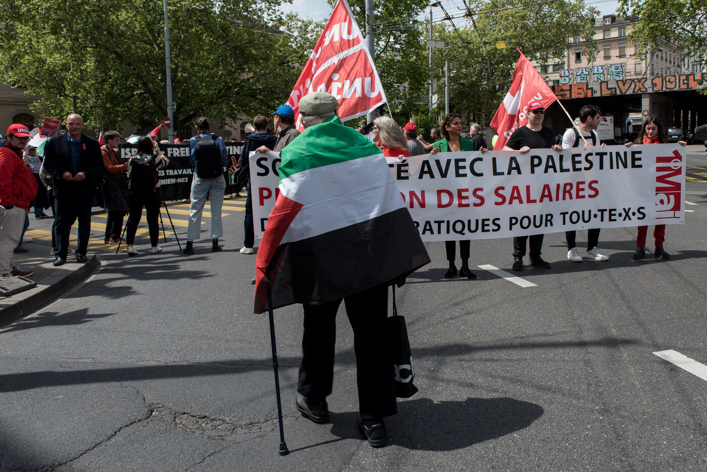 Despite the fact that May 1st, Labor Day, is not a public holiday in Geneva, Switzerland, the population nevertheless gathered to march in procession and make various demands. At the head and end of the cortege, a pro-Palestinian bloc was very much in evidence.