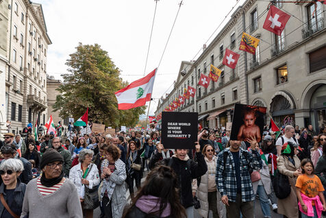 A demonstration in support of Palestine and Lebanon was held in Geneva, bringing together several thousand people.