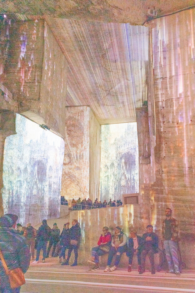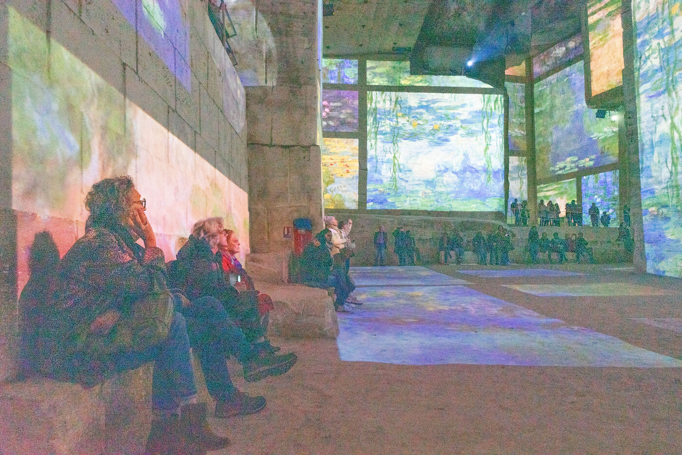 It's high, big, dizzying. Between silence and sound, vertigo and light, shadows wander. Looking up to the sky, to the right, to the left. The Carrières des Lumières offer an immersive experience where everything becomes a gigantic work of art. Each spectator finds themselves in the impressionist canvases of Claude Monet or in the dreams of Henri Rousseau. Their art dances from floor to ceiling, a suspended moment where calm and wonder take over. Plunged into the darkness, they allow themselves to dream, to smile, to contemplate, finally becoming part of the scenery.