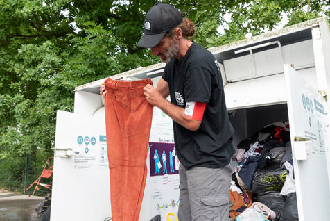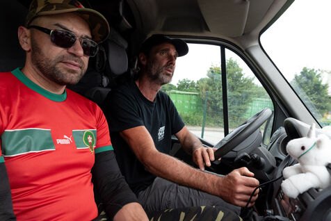 At the wheel of their vans, one by one they open the boxes that line the roads. Always full to bursting, it's the other side of over-consumption that hides behind these doors calling for donations. What happens to the clothes and shoes we think we're doing a good deed for? Who moves these tonnes of goods, sometimes almost new, sometimes non usable? Since 2016, L'Atelier Re-Née in Thonon-les-Bains has been the association responsible for collecting TLC (Textiles, Linens and Footwear) from the Chablais region, where most of the donations are then sent to a sorting centre and the rest to their workshop for a second life locally. Every day, more than two tonnes of goods are collected by two teams of three people. I spent a morning with Sébastien and Fakir, both collection agents.