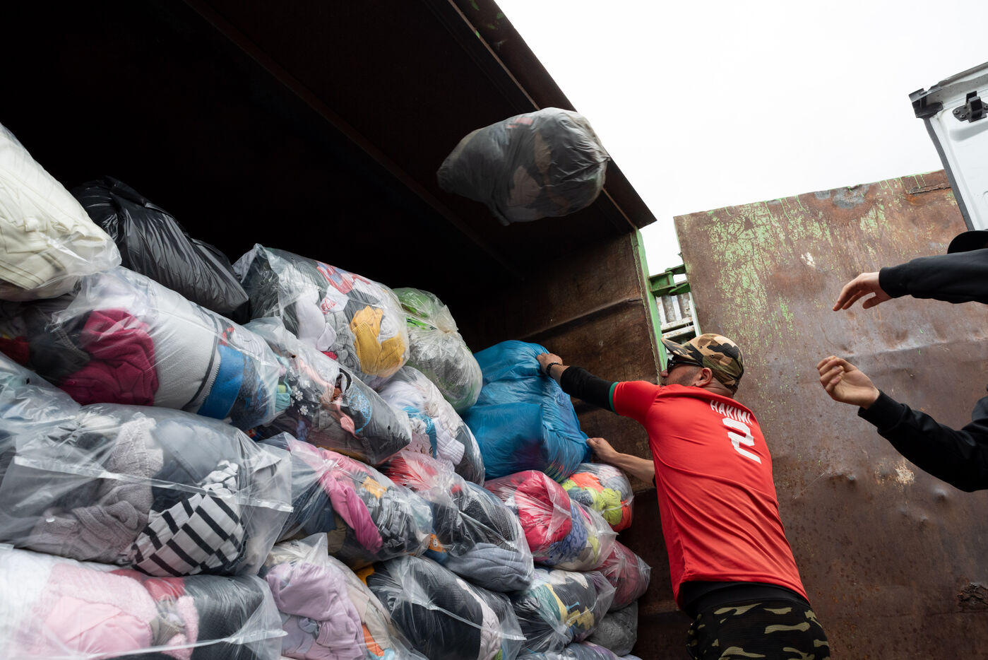 Au volant de leur camionnette, ils ouvrent les uns après les autres ces caissons qui bordent les routes. Toujours pleins à craquer, c'est l'envers du décors de la surconsommation qui se cache derrière ces portes appelants aux dons. Que deviennent ces vêtements et chaussures pour lesquels nous pensons faire une bonne action ? Qui déplace ces tonnes de marchandises, parfois presque neuves, parfois importables ? Depuis 2016, L'Atelier Re-Née à Thonon-les-Bains est l'association chargée de la collecte de TLC (Textiles, Linges et Chaussures) du Chablais où la majeure partie des dons sont ensuite envoyés en centre de tri et le reste dans leur atelier en vue d'une seconde vie localement. Tous les jours, plus de deux tonnes de marchandises sont collectés par deux équipes de trois personnes. Le temps d'une matinée, j'ai pu suivre Sébastien et Fakir, tout deux agent de collecte.