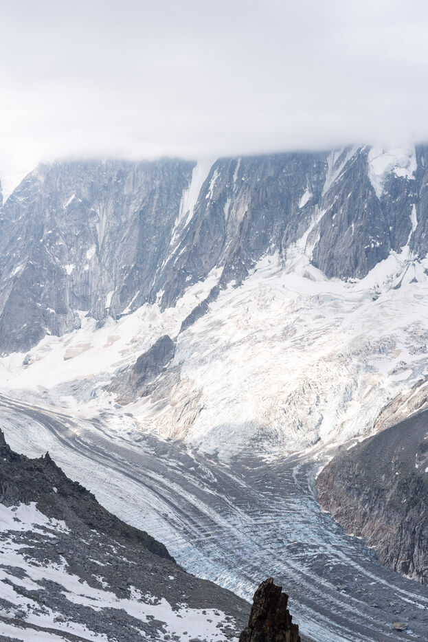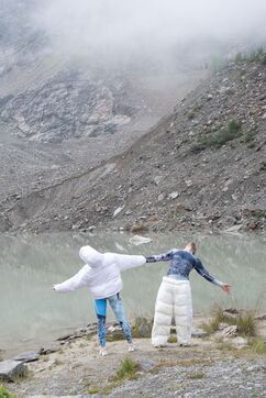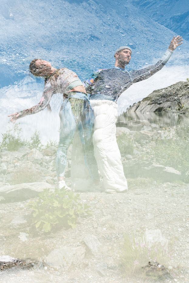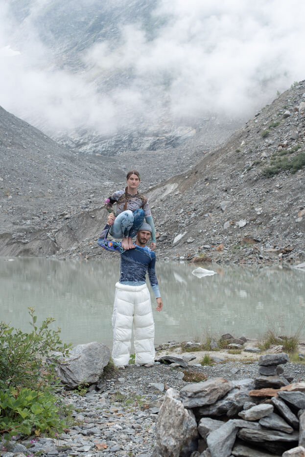 Les glaciers s'effacent (Glaciers are disappearing) is a series of 10 photos highlighting the visible melting of glaciers today. Humans are at once the actors, witnesses and defenders. The SoulMagnet company creates performances committed to climate change with the aim of raising awareness and questioning our human impact on the environment through body movements. At the foot of the post-glacial lake of Bionnassay, they silently express these disappearing glaciers.