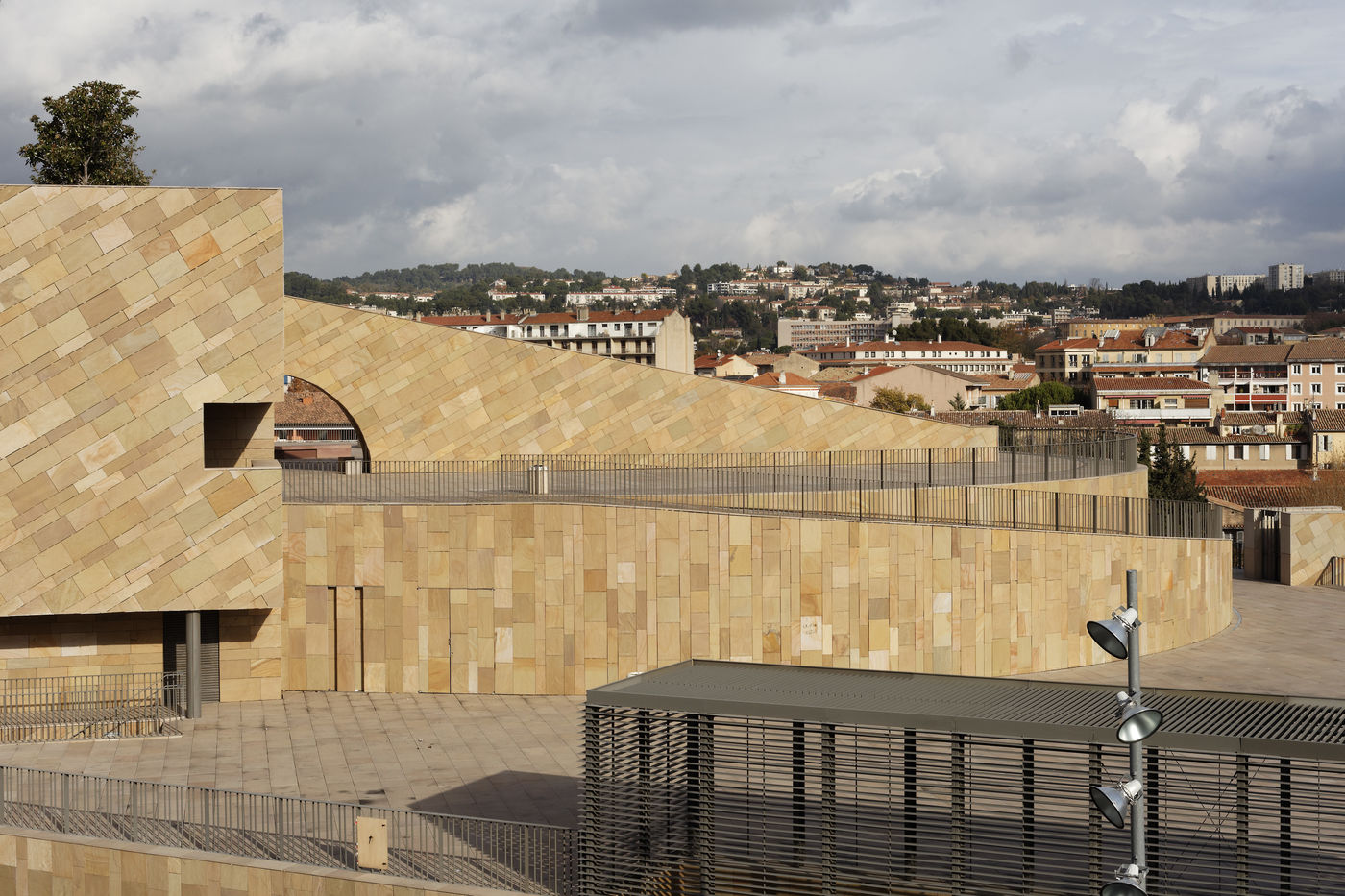 The Grand Théâtre de Provence is a theatre located in the new ‘Sextius Mirabeau’ district of Aix-en-Provence. A symbol of the Aix region was used in the design of the auditorium: Mont Sainte-Victoire, recalled in particular by the different-coloured stones on the outside.