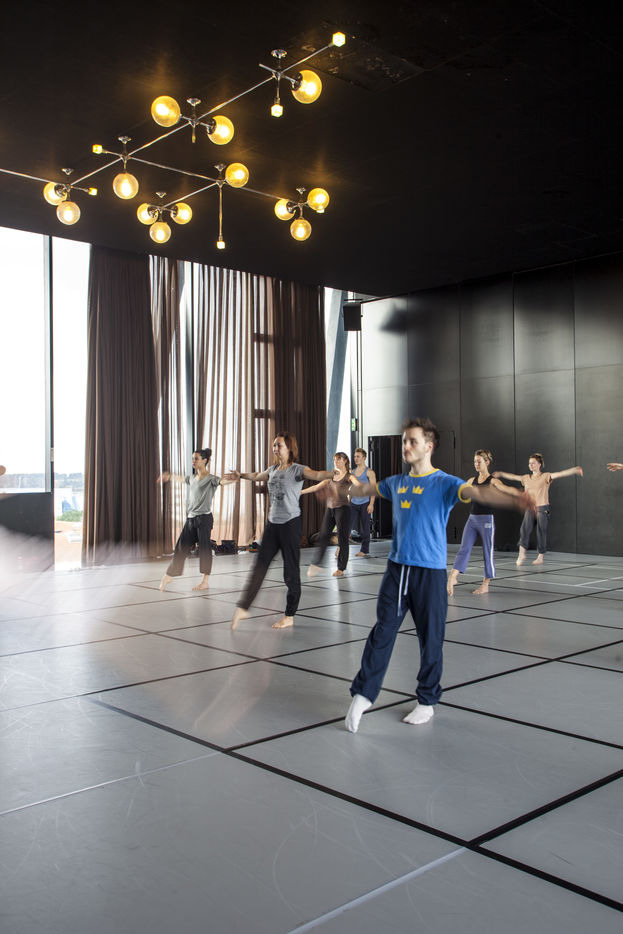 This rectangular parallelepiped of 3,000 m2 is 27 metres high and 18 metres wide and is designed in black raw reinforced concrete and glass. It consists of four rehearsal rooms for the Ballet Preljocaj, which are located in the upper part of the pavilion. The performance stage (17 m × 14.5 m) is located in the basement and can accommodate up to 386 spectators. The choreographic centre welcomes contemporary ballets of all origins throughout the year.