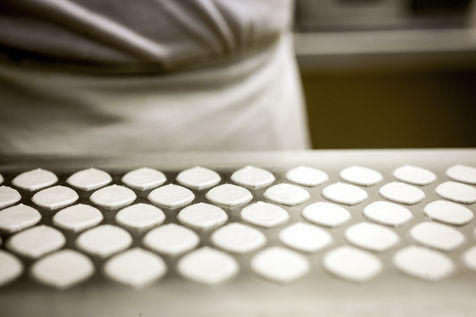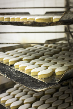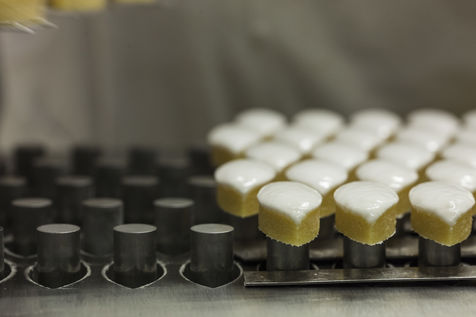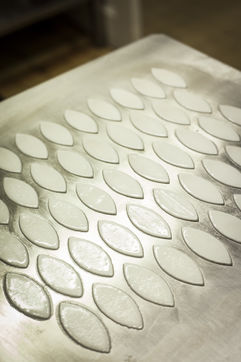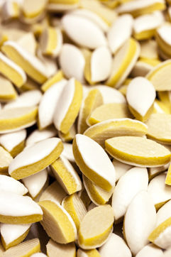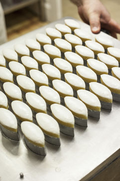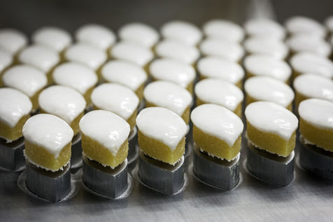 The calisson is a confection made of a fine paste of candied melon (or other candied fruit) and almonds crushed together, topped with royal icing and placed on a base of unleavened bread. This candy, often flavoured with orange blossom and shaped like a shuttle, has been a speciality of Aix-en-Provence since the 15th century.