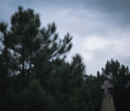 From this desperate search came a series of images full of melancholy, from a motorcyclist driving at full speed to this forgotten calvary in the pine forest.