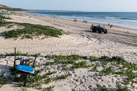 Fonte da Telha est une plage touristique populaire au sud de Lisbonne. Surfers et touristes aiment venir ici sans remarque que quelques mètres plus loin, un petit village vivant de la pêche est installé ici depuis longtemps, parfois à même le sable de la plage.