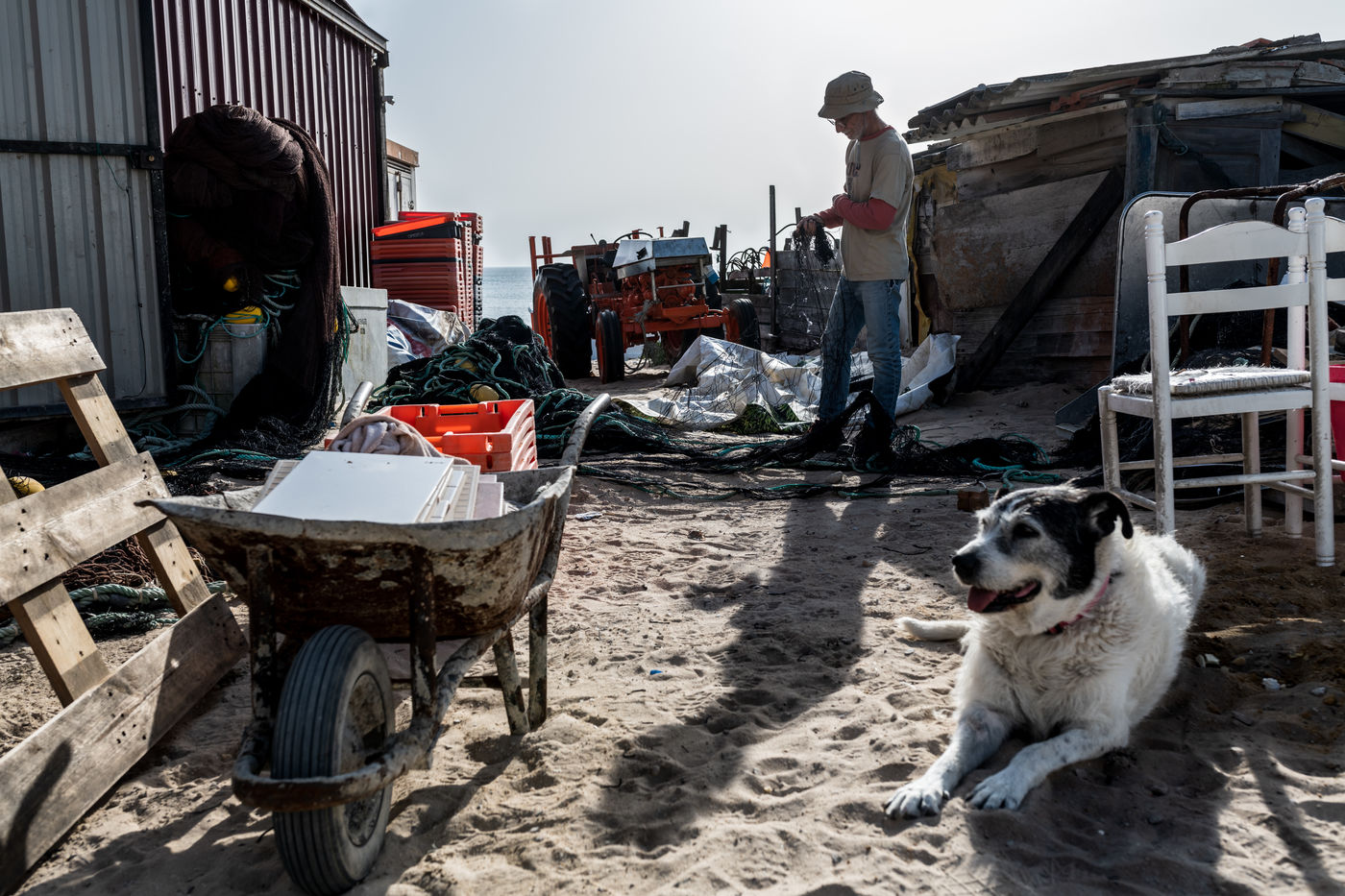Fonte da Telha is a popular touristic beach located south of Lisbon. Surfers and holiday makers like to come here to rest and enjoy the sea without noticing that a few hundred meters from here a small village of fishermen has settled in a long time ago, sometimes directly on the sand of the beach.