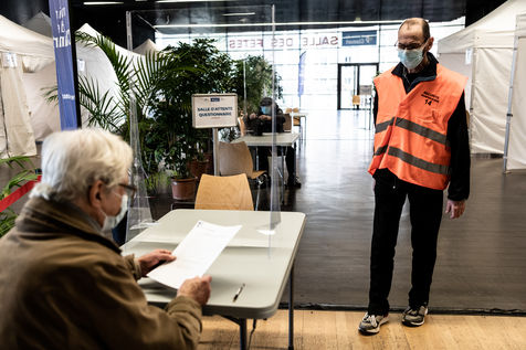 There are very precise steps for this first day of vaccination. With a beforehand appointment, the people over 75 years old beging by filling a question form and meet a volunteer doctor of the city. They wait then to be received in a booth and be injected the vaccine. The city has received less than half the quantity of bottles forecasted. They stay then in observation for 15 minutes to avoid any side effect. They will have to come back the next month for the next injection.