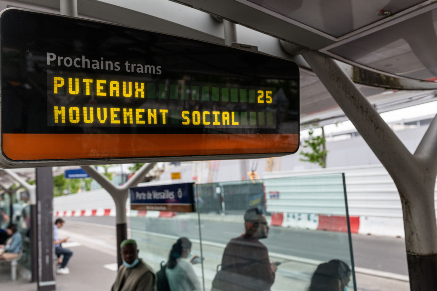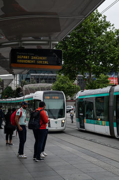 Les trajets de tramway ont ete adaptes. Images des passagers a la connexion entre les tramways T2 et T3 à la porte de Versailles.