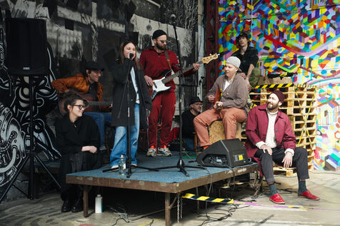 Première édition du festival Le Doc En Scène La Voix Humaine Ukraine où des artistes d'Ukraine et de Russie ont offert au public des spectacles issus de différentes branches artistiques comme le théâtre, le cirque ou les arts visuels. Espace Albatros à Montreuil, près de Paris, le 23 mars 2024.