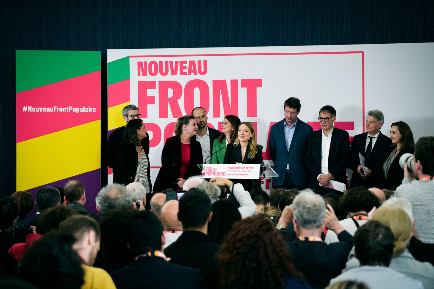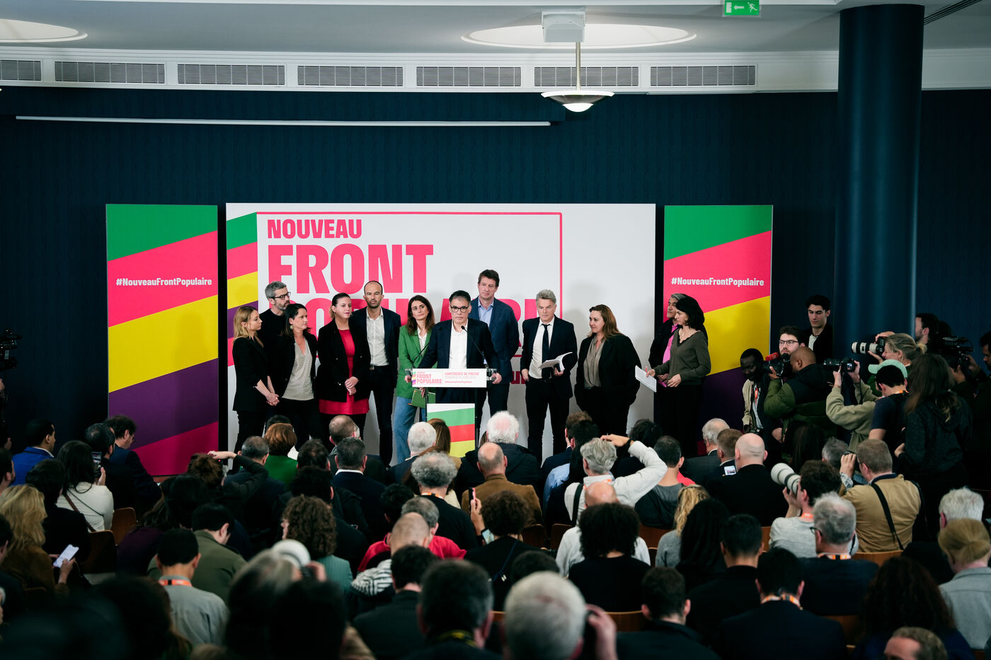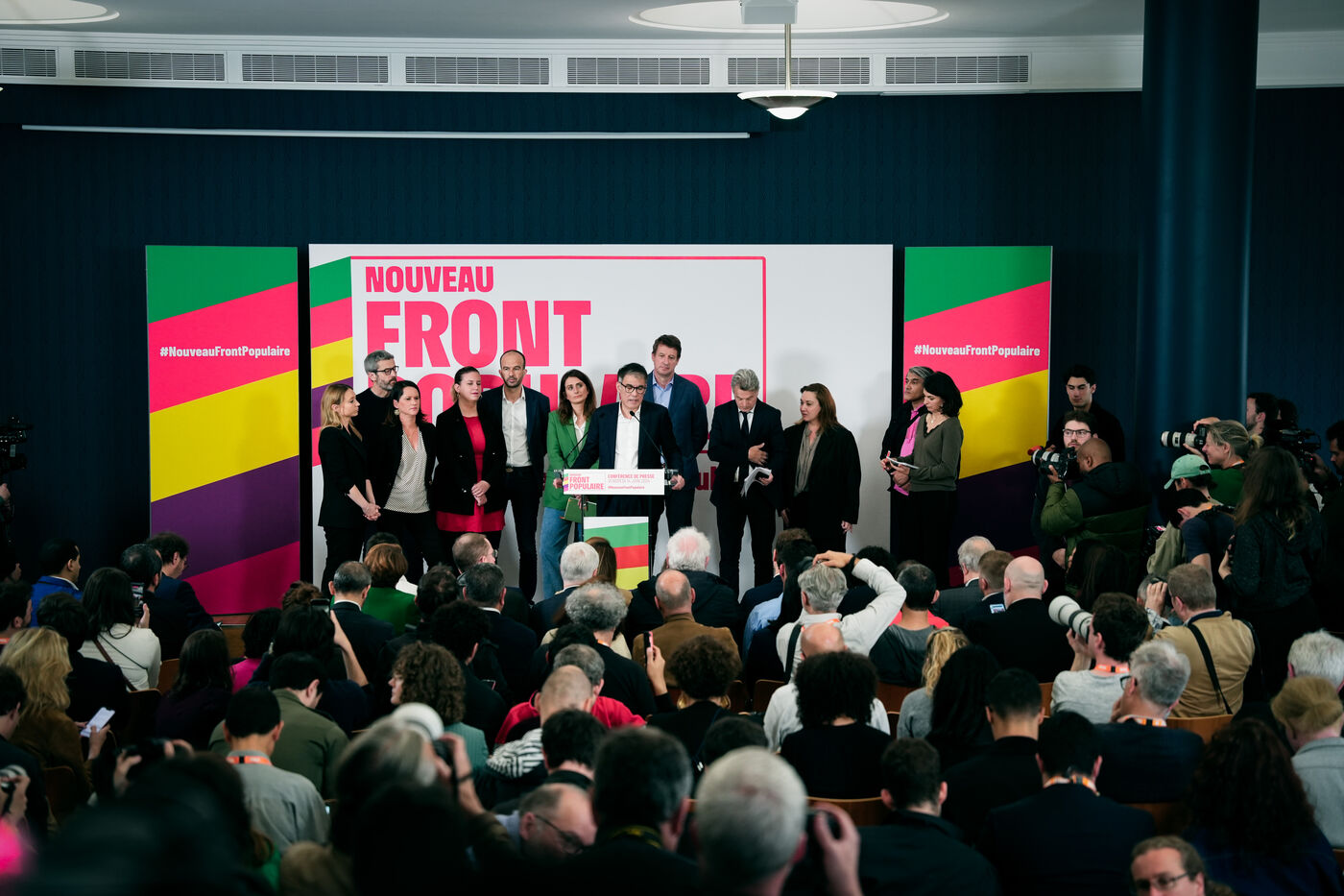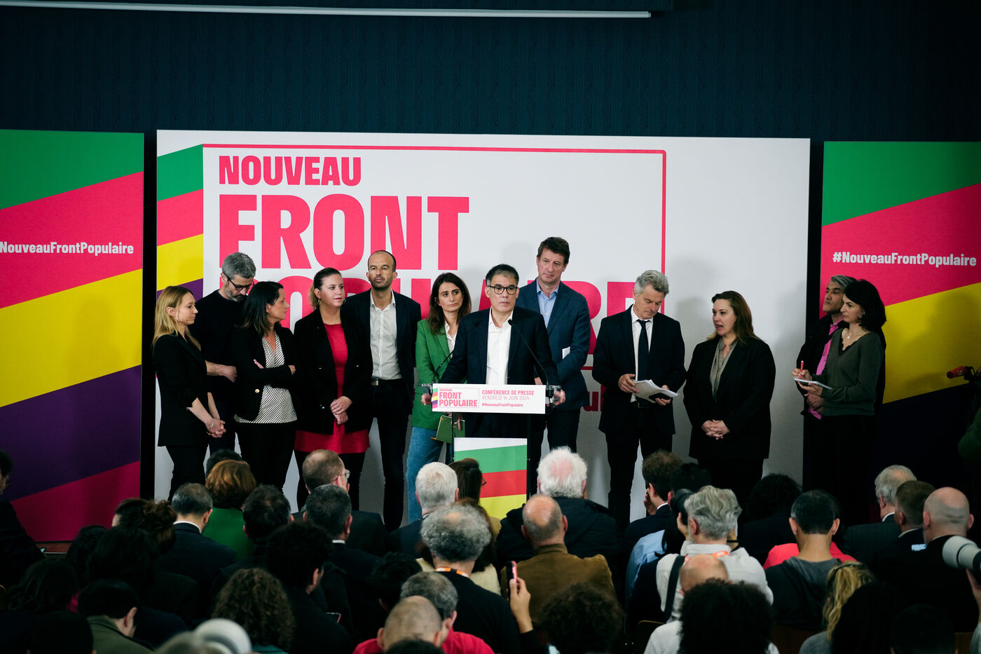 Conference de presse annoncant le nouveau front populaire a Paris, France le 14 juin, 2024.
