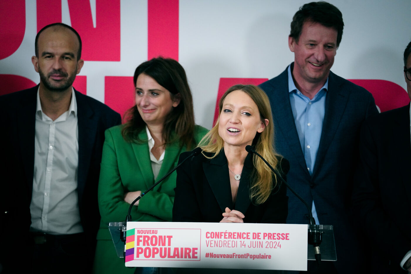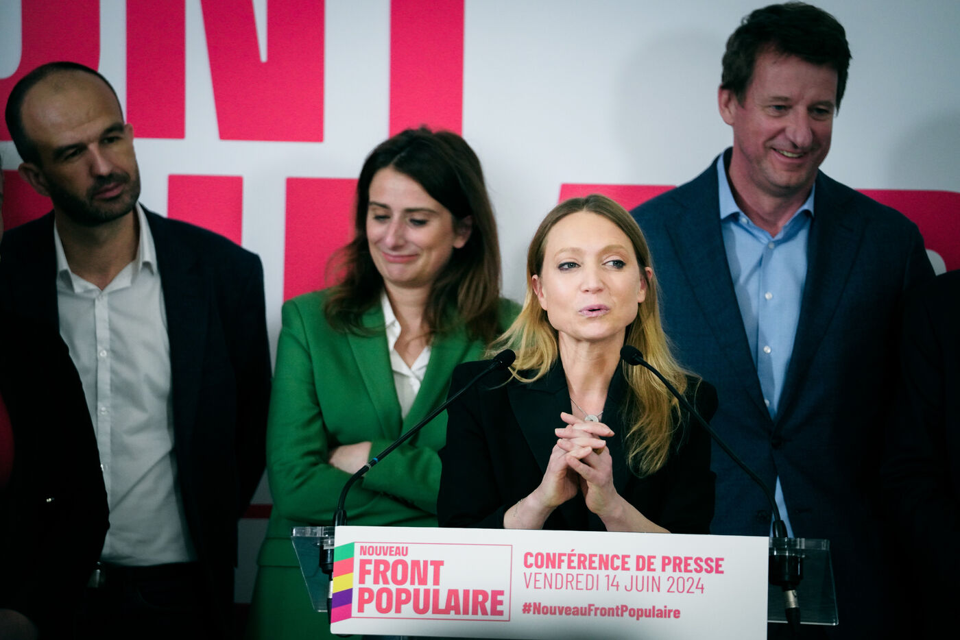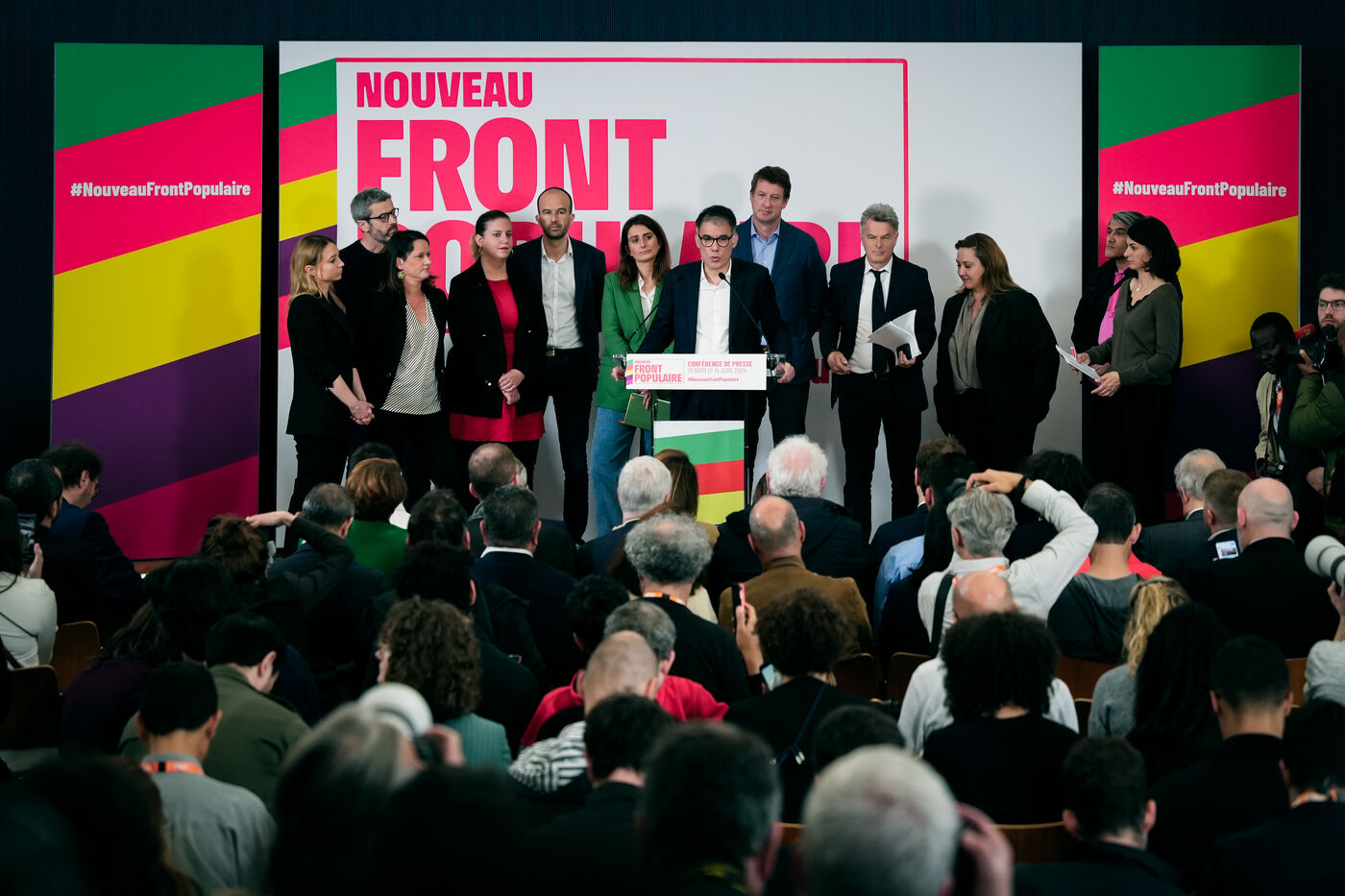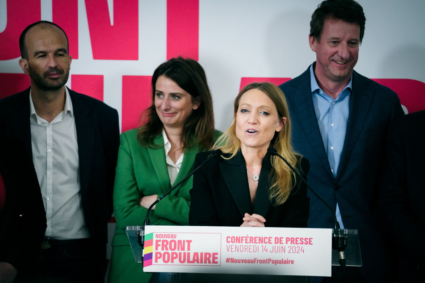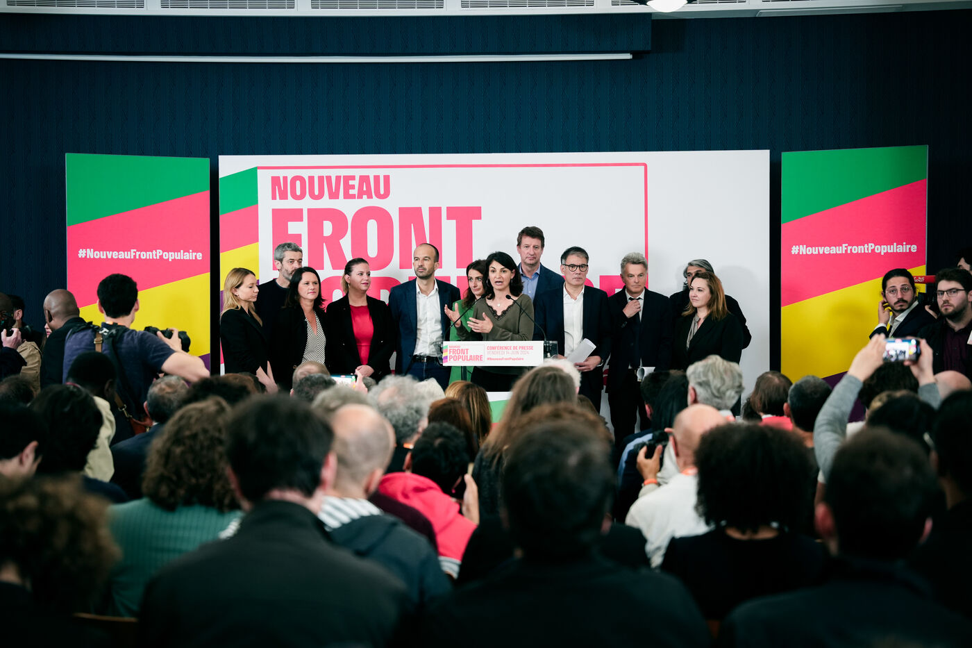 Conference de presse annoncant le nouveau front populaire a Paris, France le 14 juin, 2024.