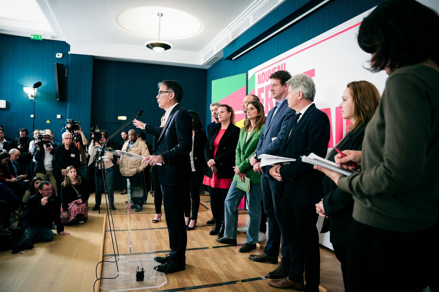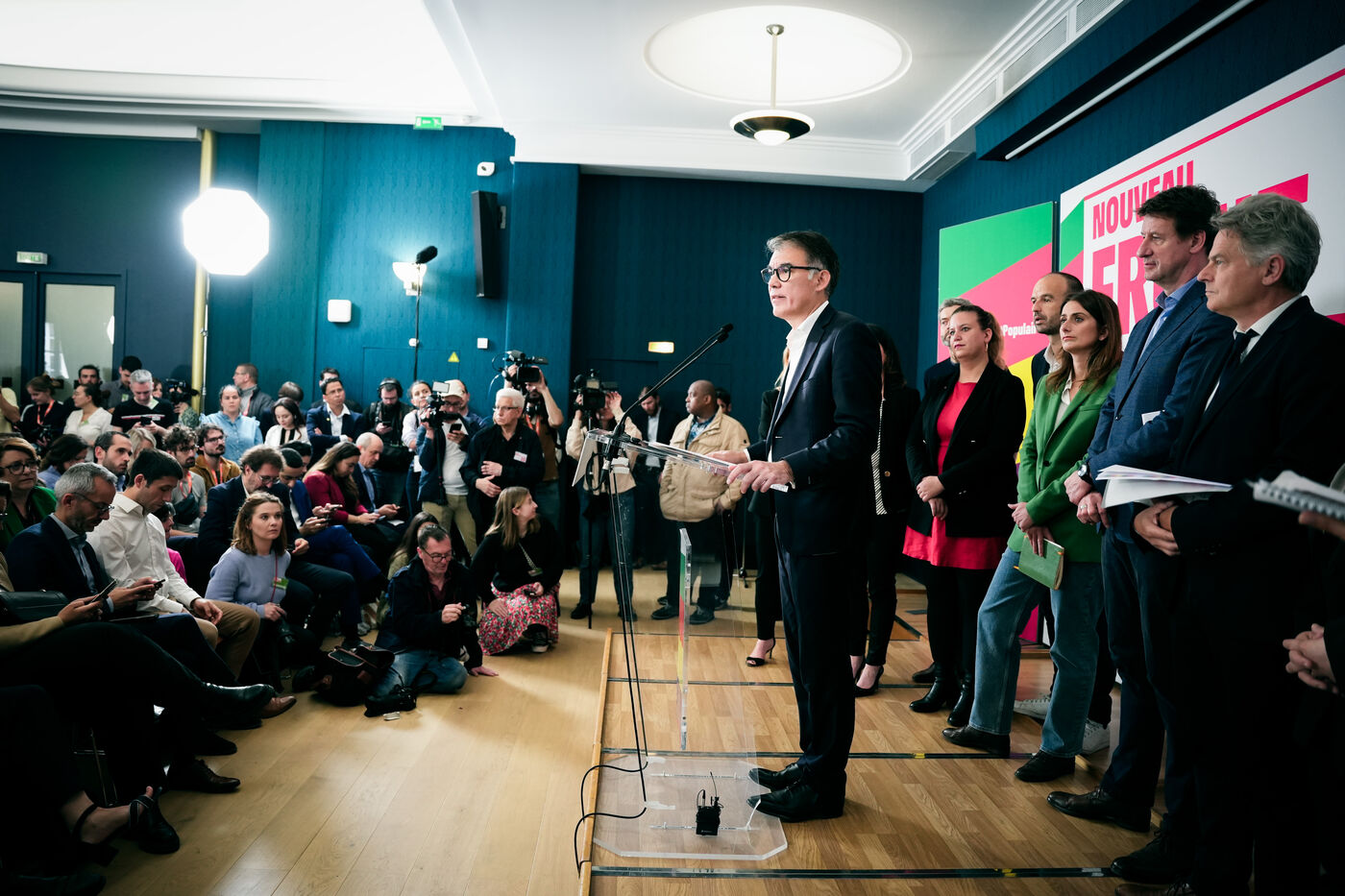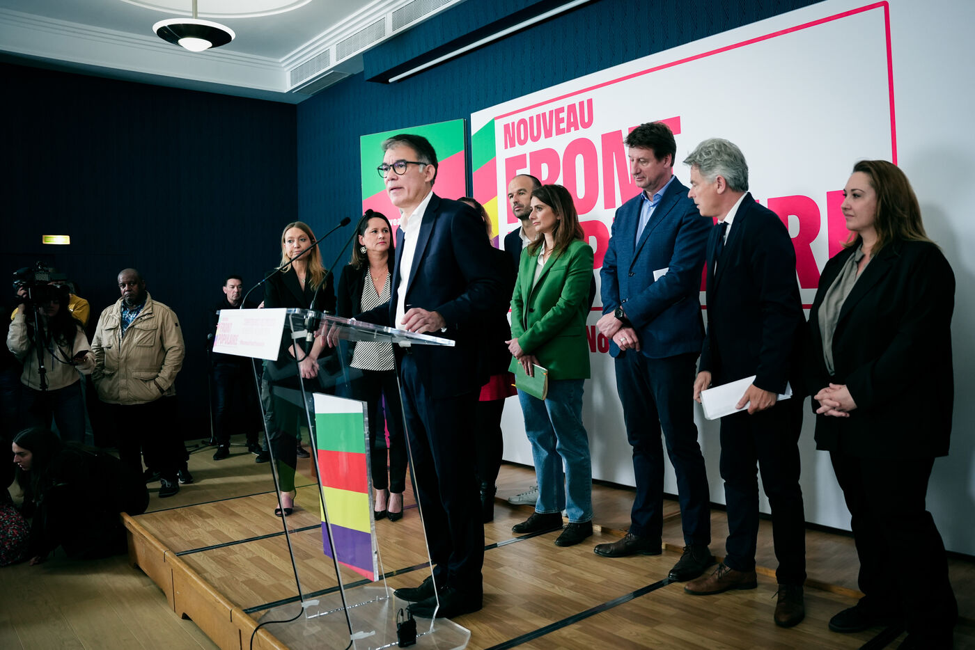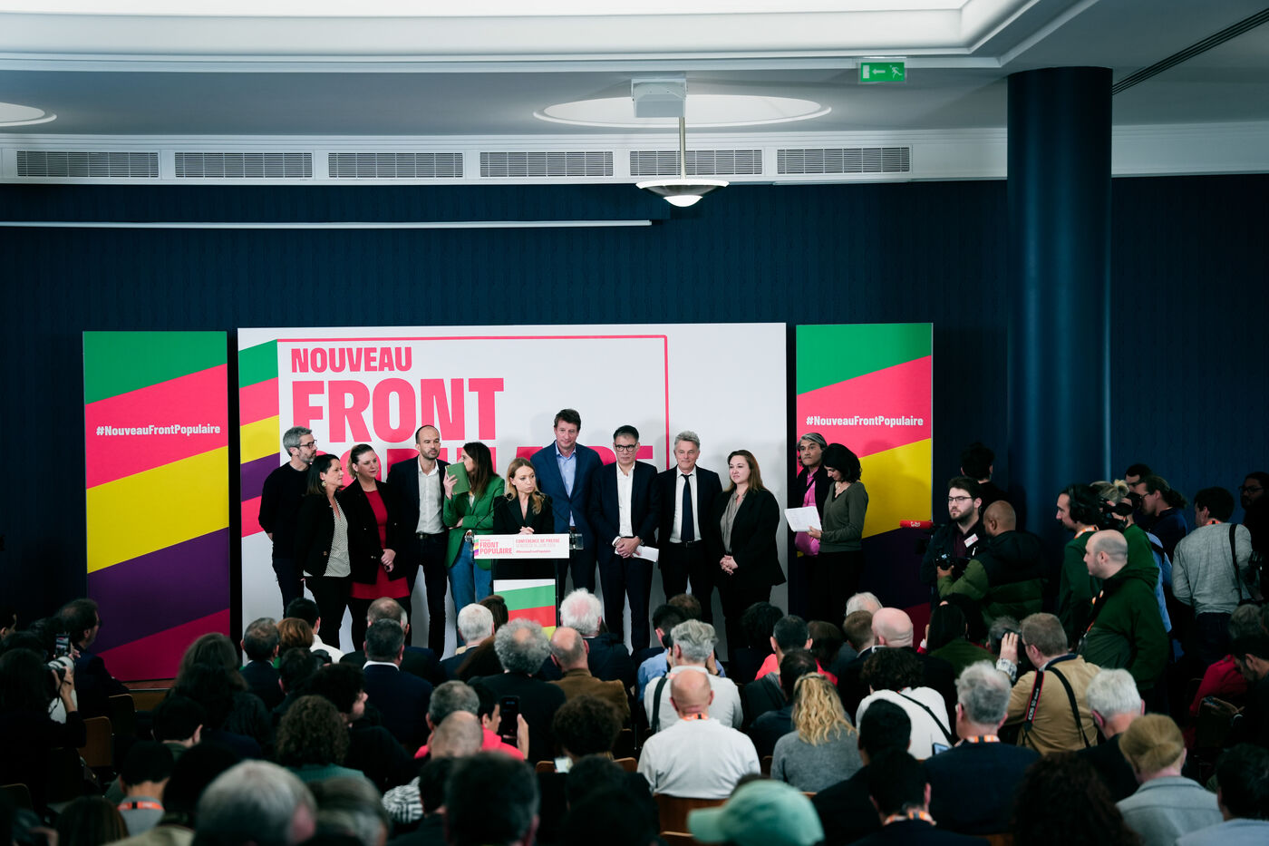 Conference de presse annoncant le nouveau front populaire a Paris, France le 14 juin, 2024.
