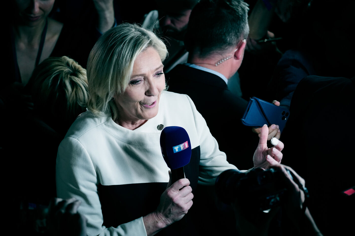 Election evening of the Rassemblement National party with Jordan Bardella and Marine Le Pen after the second and final round of France s legislative elections, in Paris, France on 7th July, 2024.