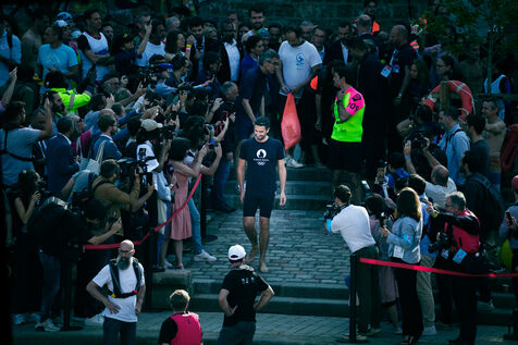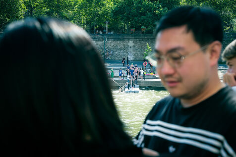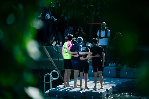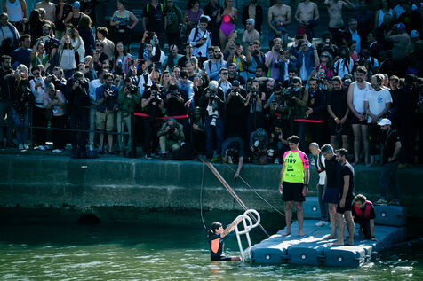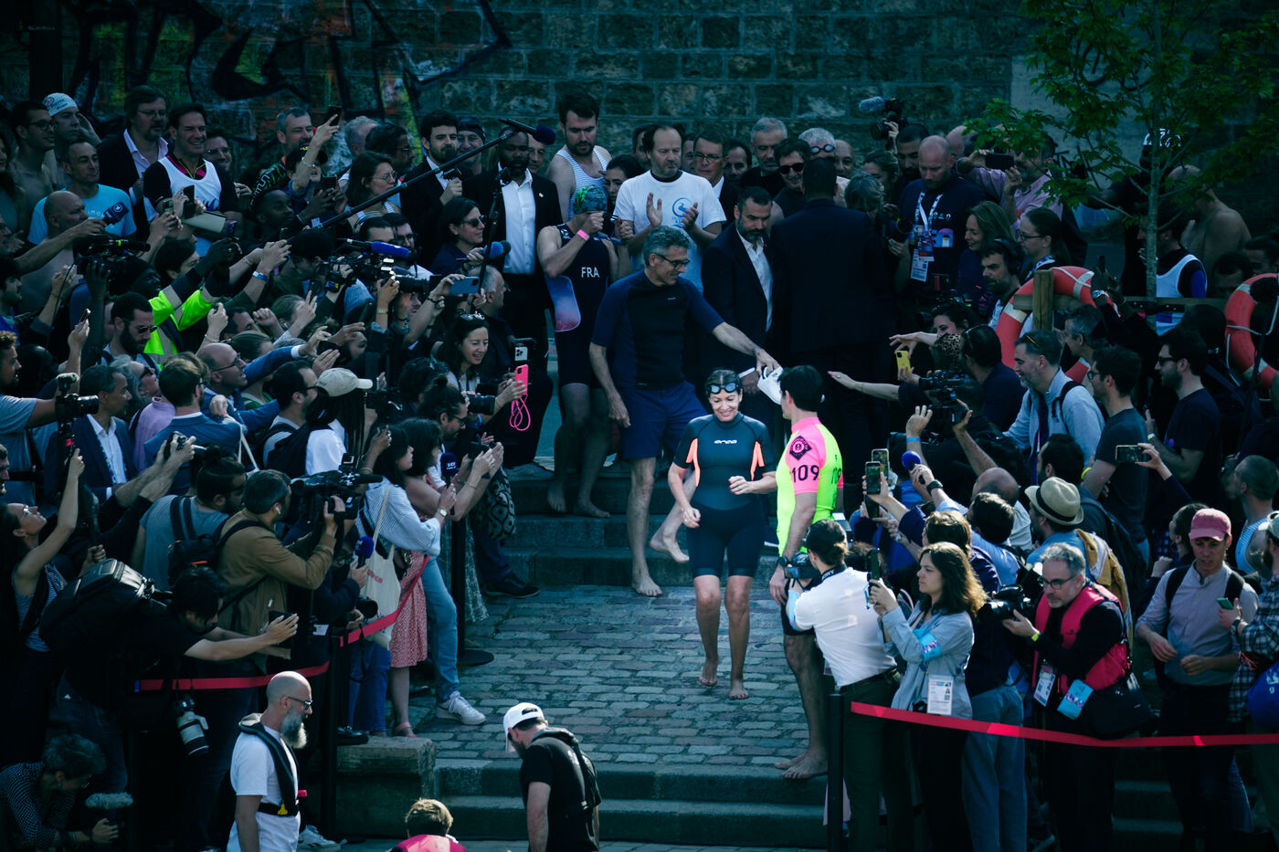 Swim in the Seine river of Anne Hidalgo, mayor of Paris and Tony Estanguet, Paris 2024 President ahead of the Paris2024 Summer Olympic Games in Paris, France on July 17, 2024.