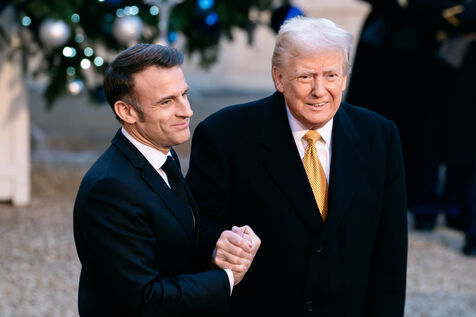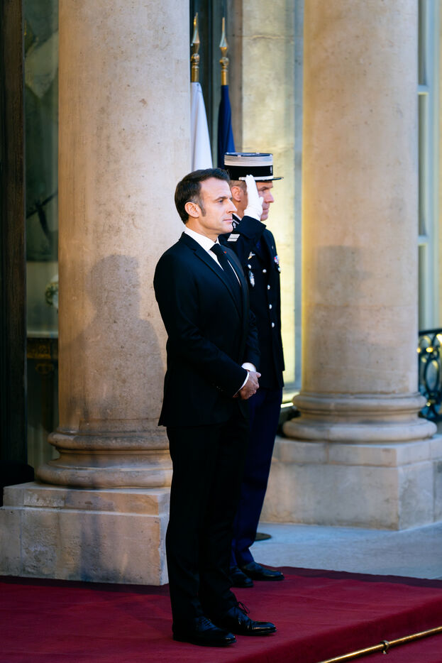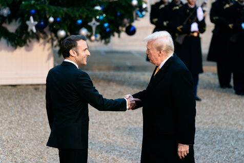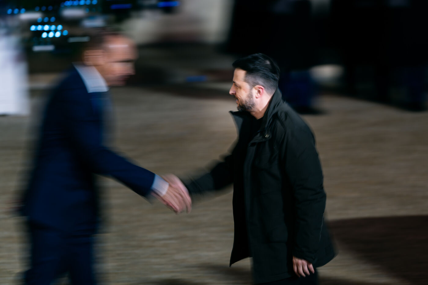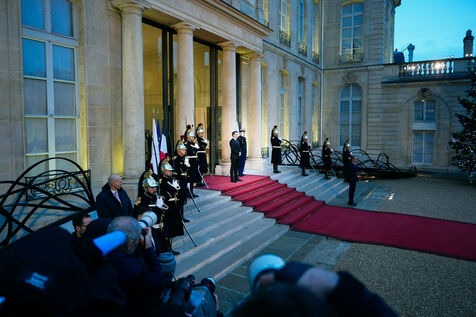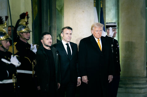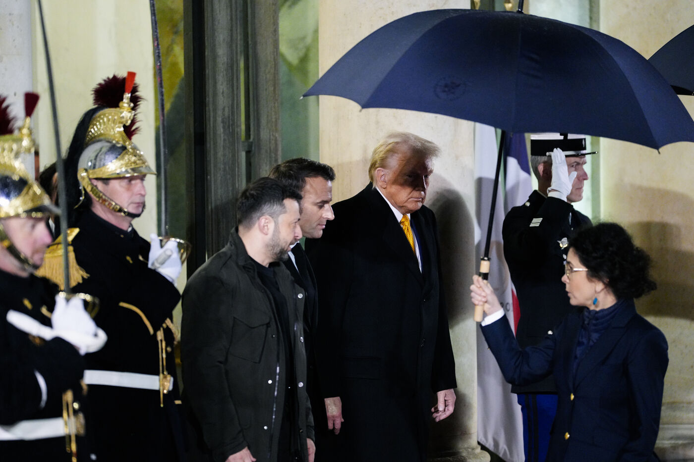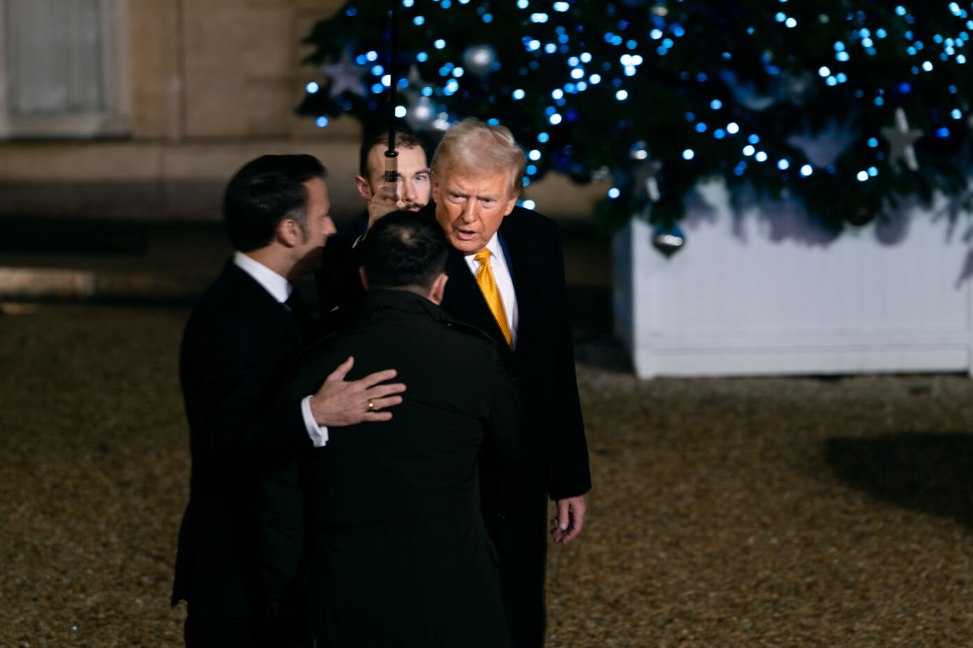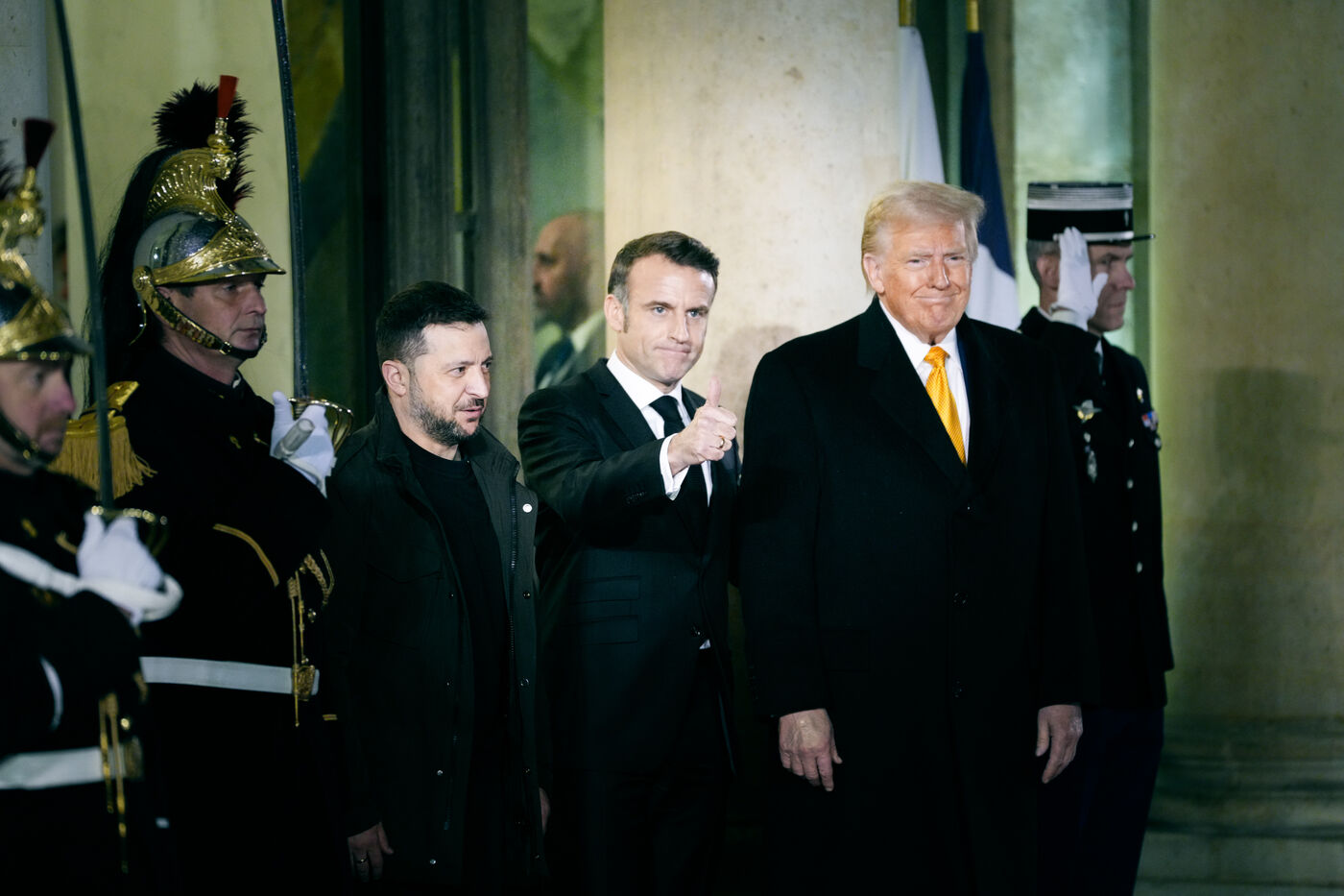 Reception of Donald Trump US president elect and Volodymyr Zelensky president of Ukraine at the Elysee Palace in Paris, France on 7 December, 2024.