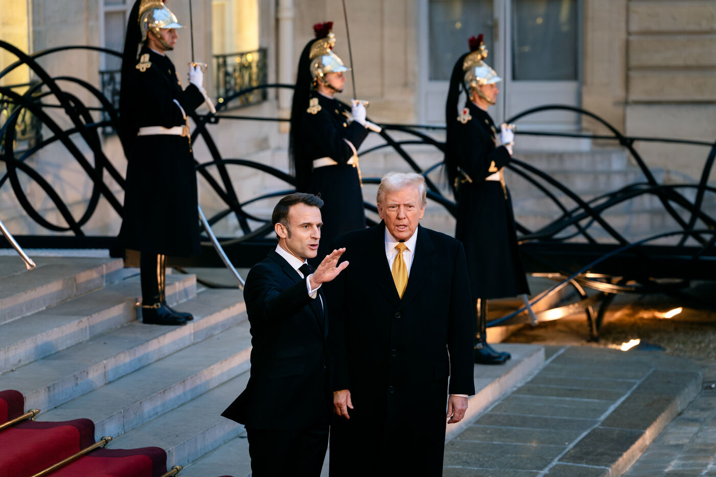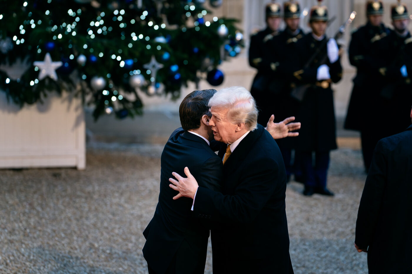 Reception officielle de Donald Trump, president elu des Etats Unis et Volodymyr Zelensky president de l Ukraine au Palais de l Elysee a Paris, en France, le 7 decembre 2024.