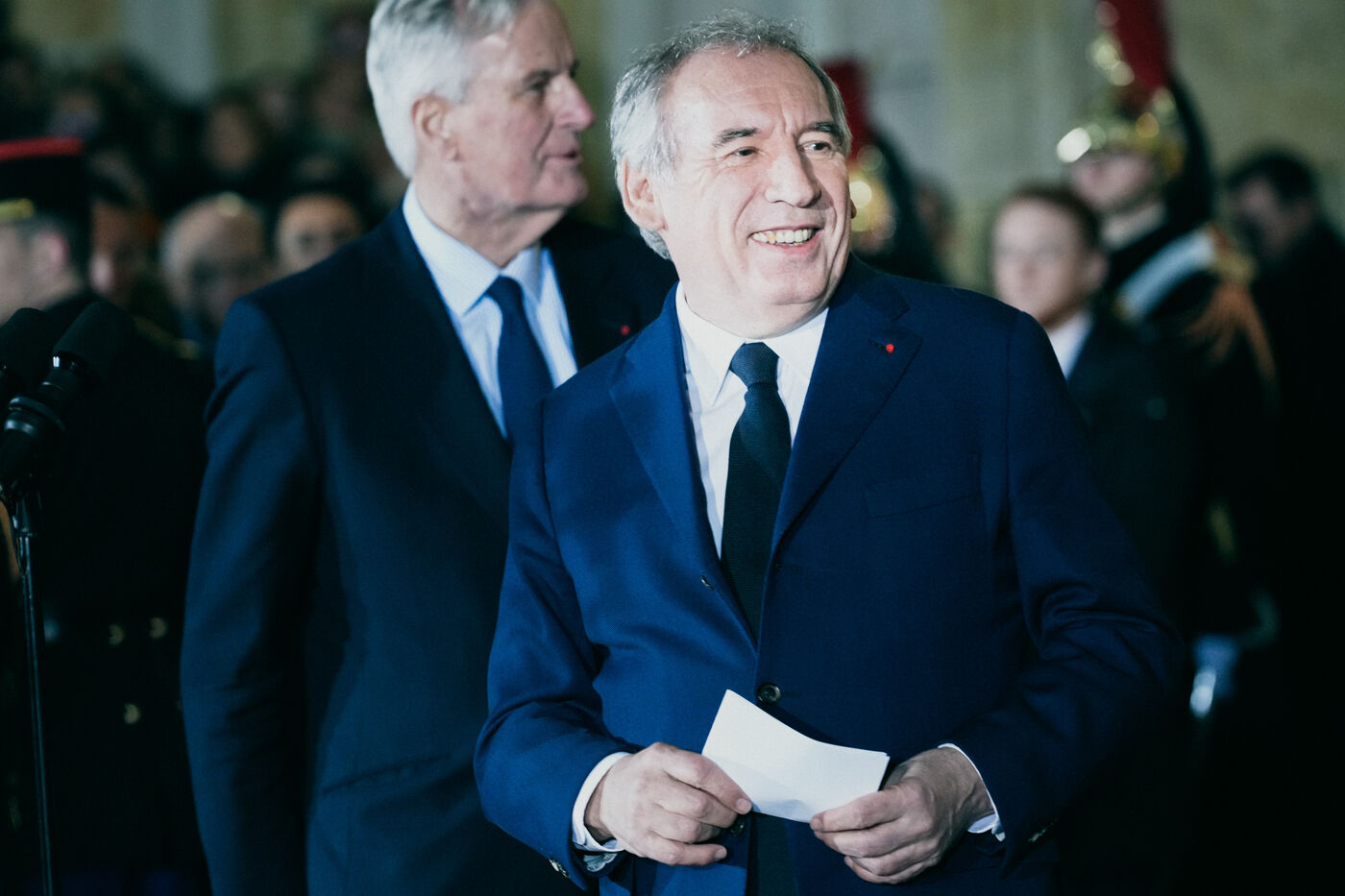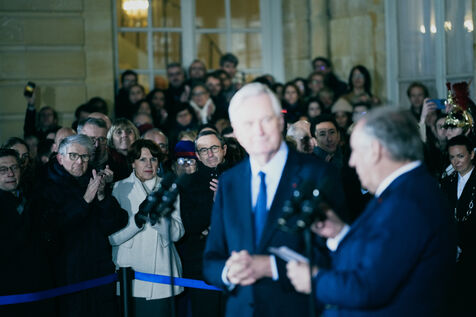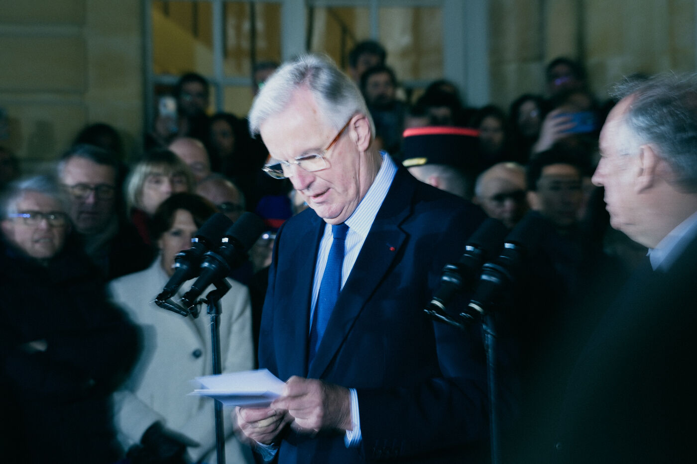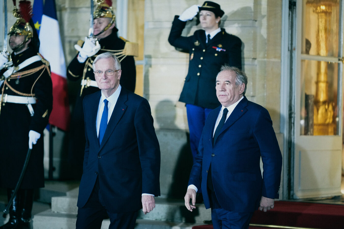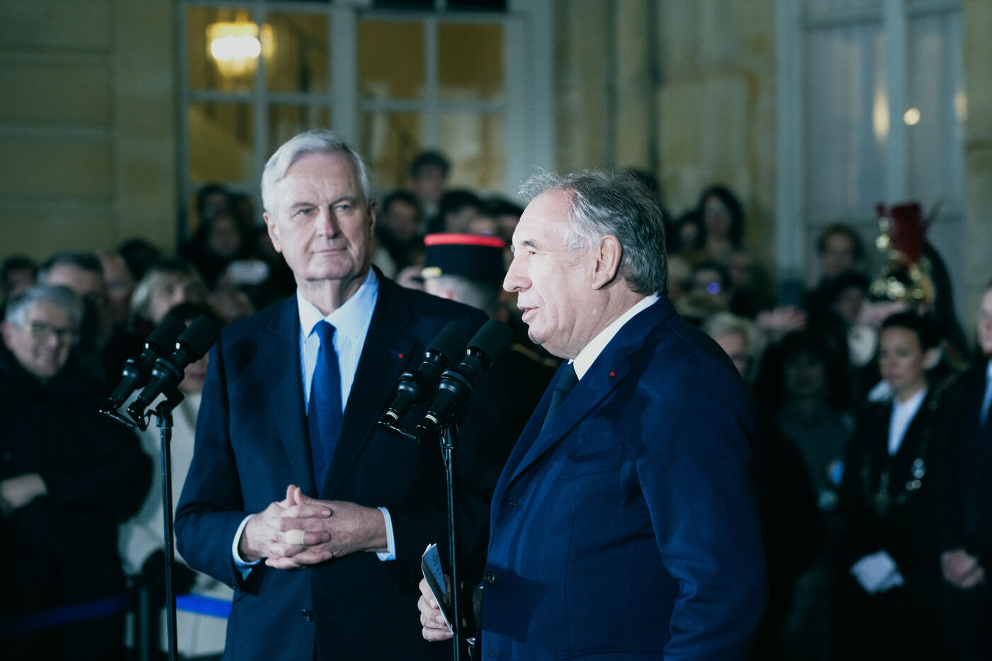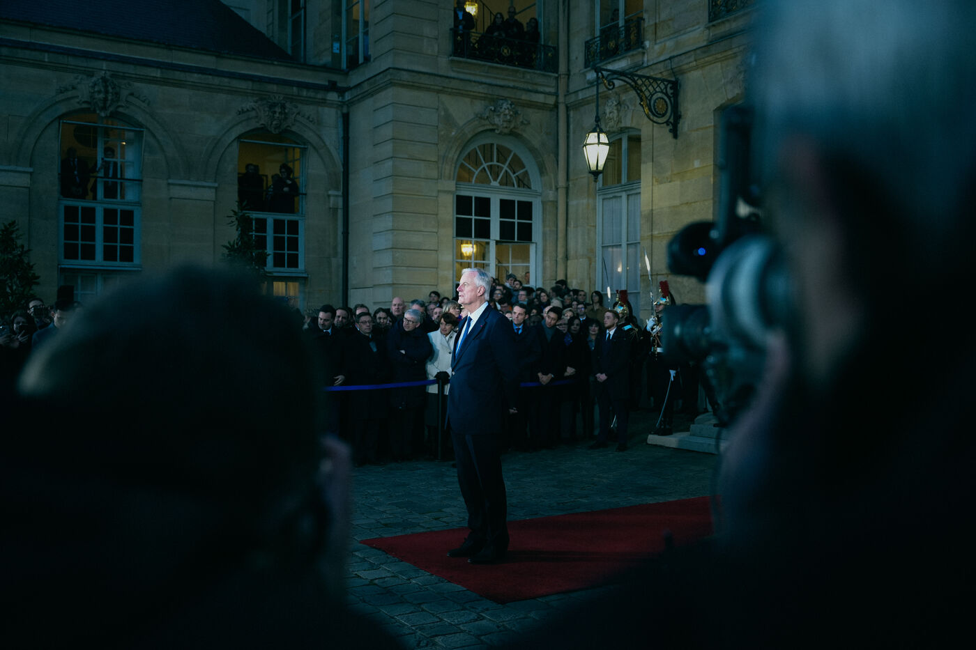 Handover of power between Michel Barnier former prime minister and Francois Bayrou prime minister at the Matignon Hotel in Paris France on December 13 2024.