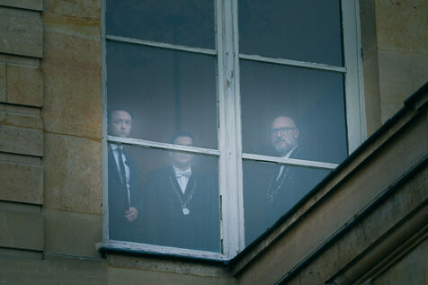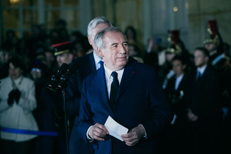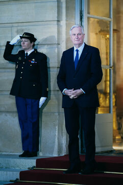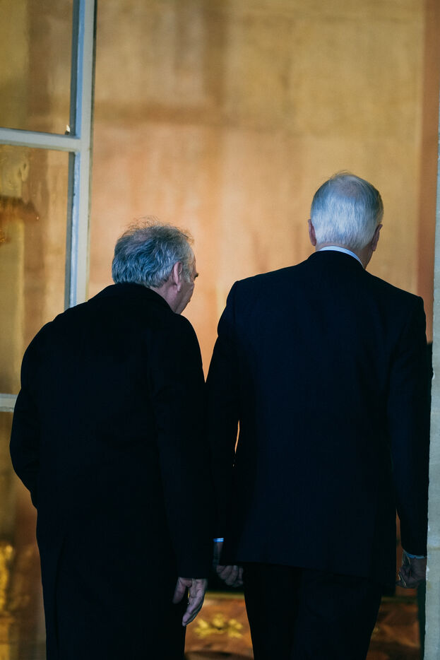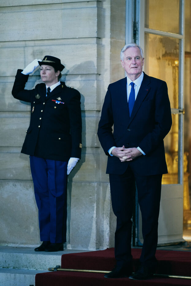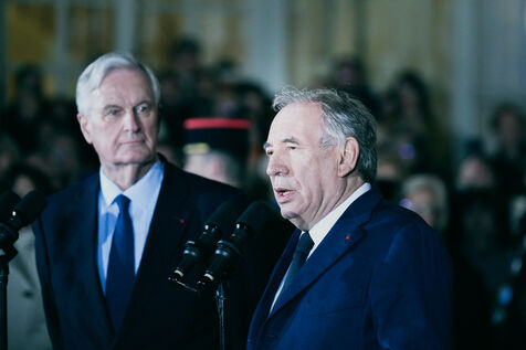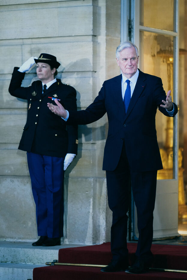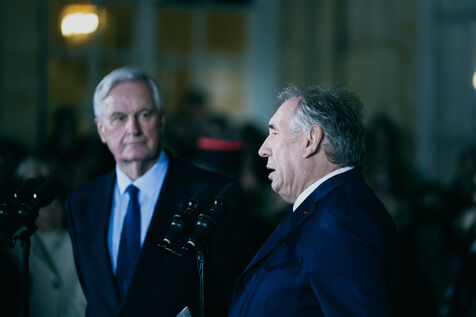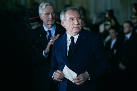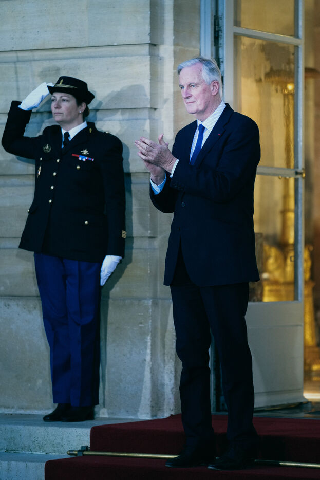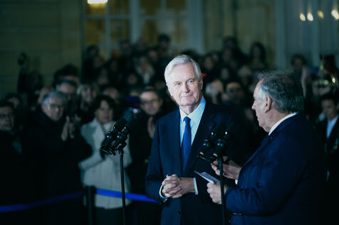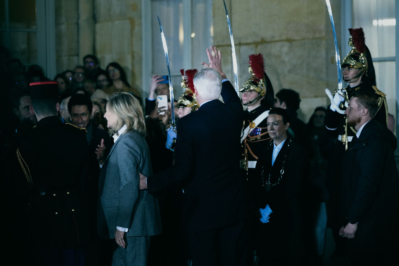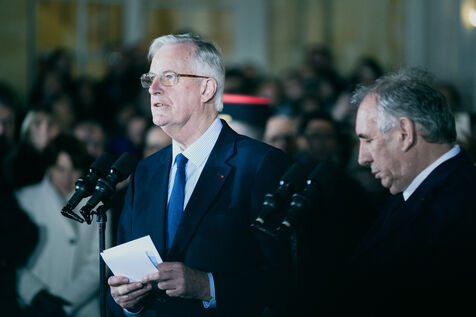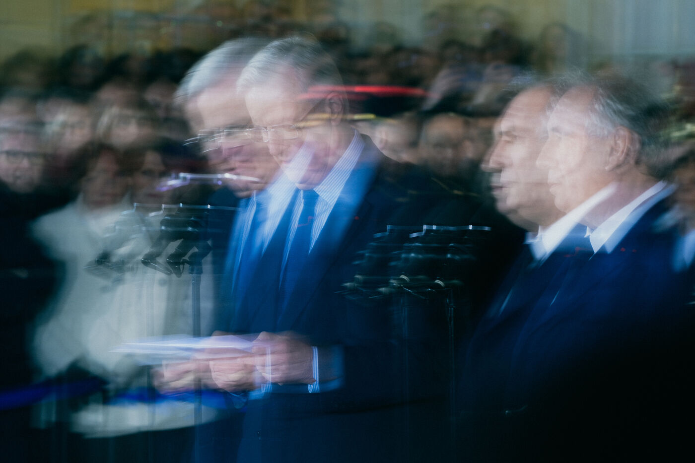 Handover of power between Michel Barnier former prime minister and Francois Bayrou prime minister at the Matignon Hotel in Paris France on December 13 2024.