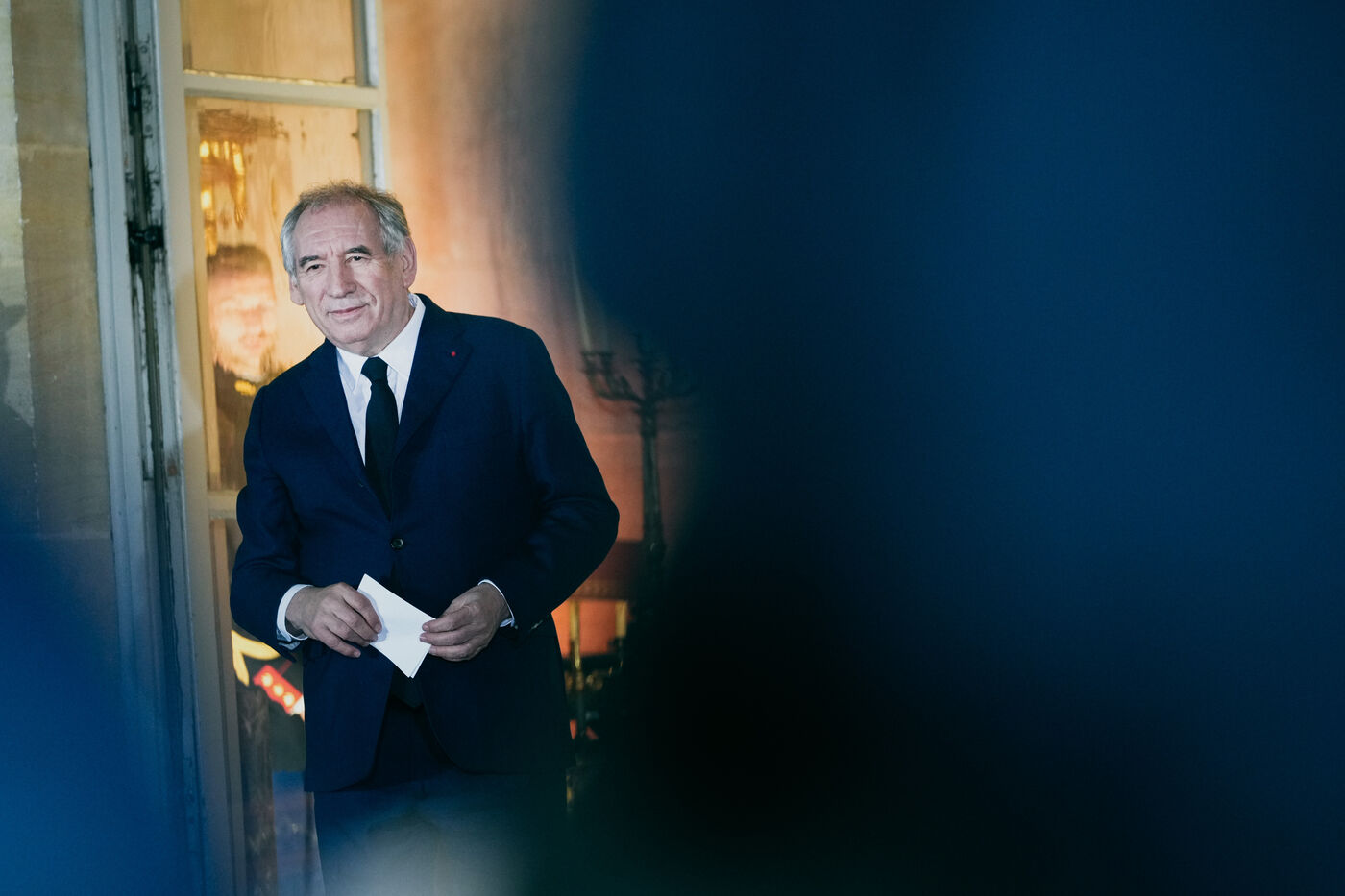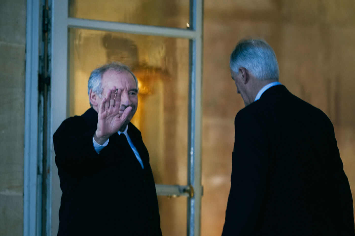 Passation de pouvoir a entre Michel Barnier ancien premier ministre et Francois Bayrou premier ministre a l Hotel de Matignon a Paris en France le 13 decembre 2024.