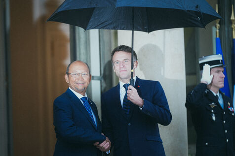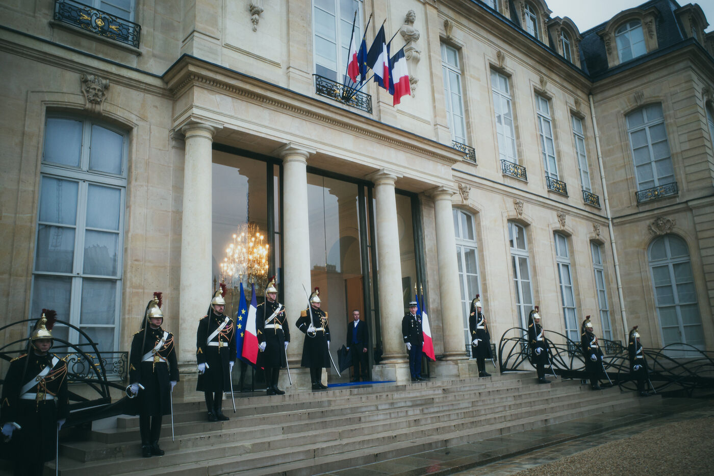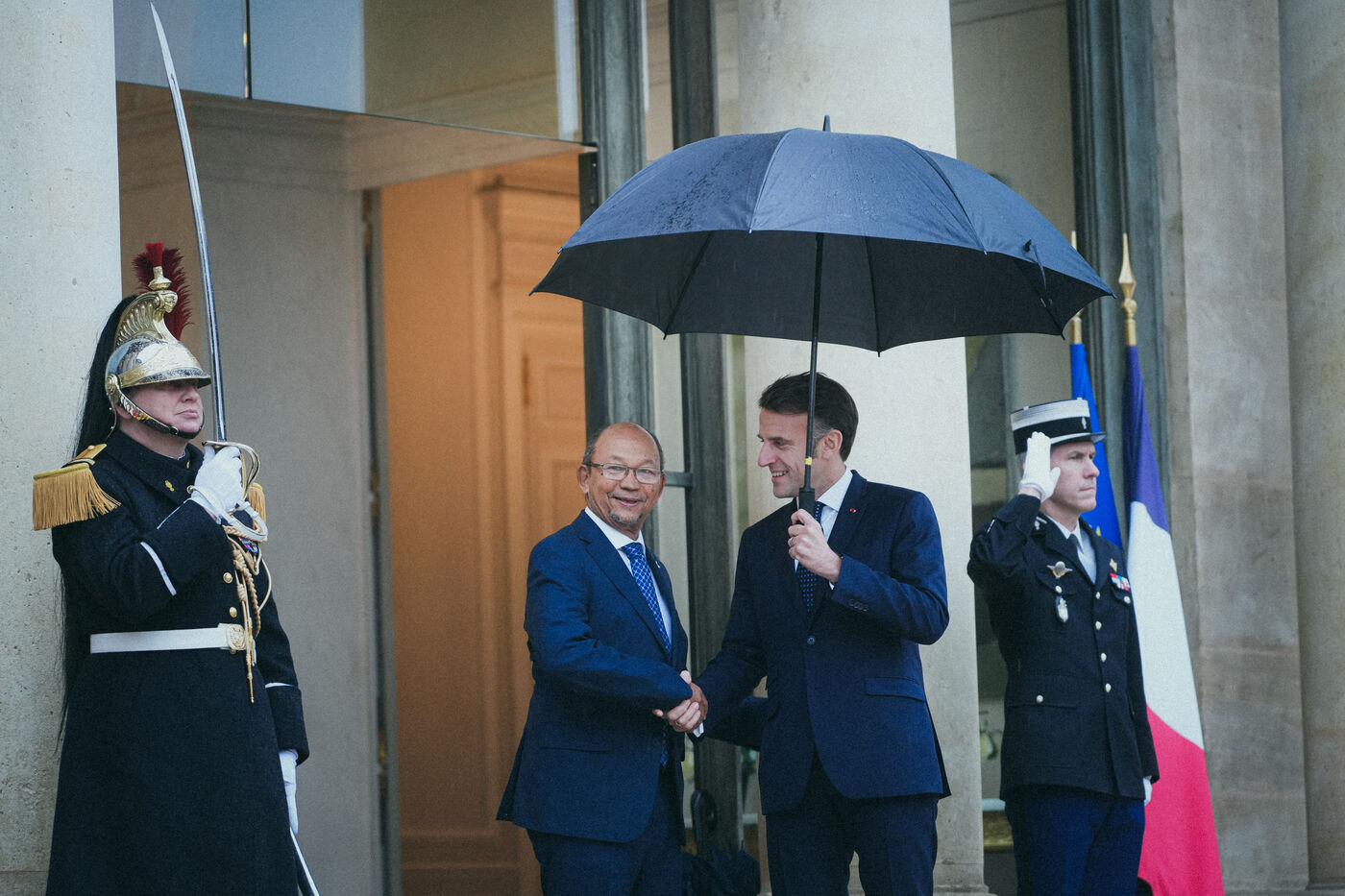 Reception of Leslie Voltaire President of the Transitional Presidential Council of Haiti at the Elysee Palace in Paris France on 29th January 2025