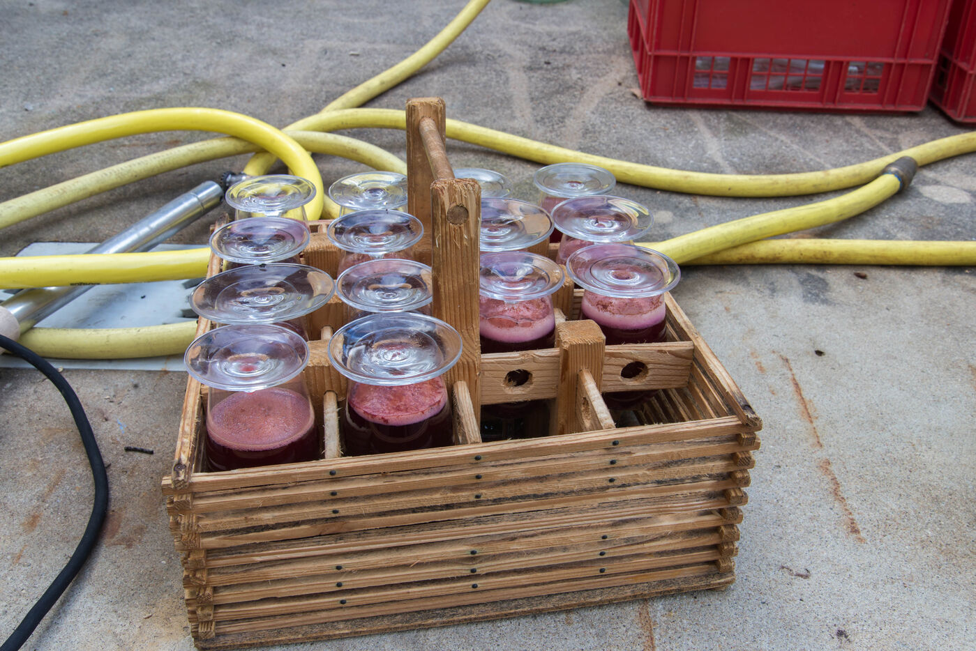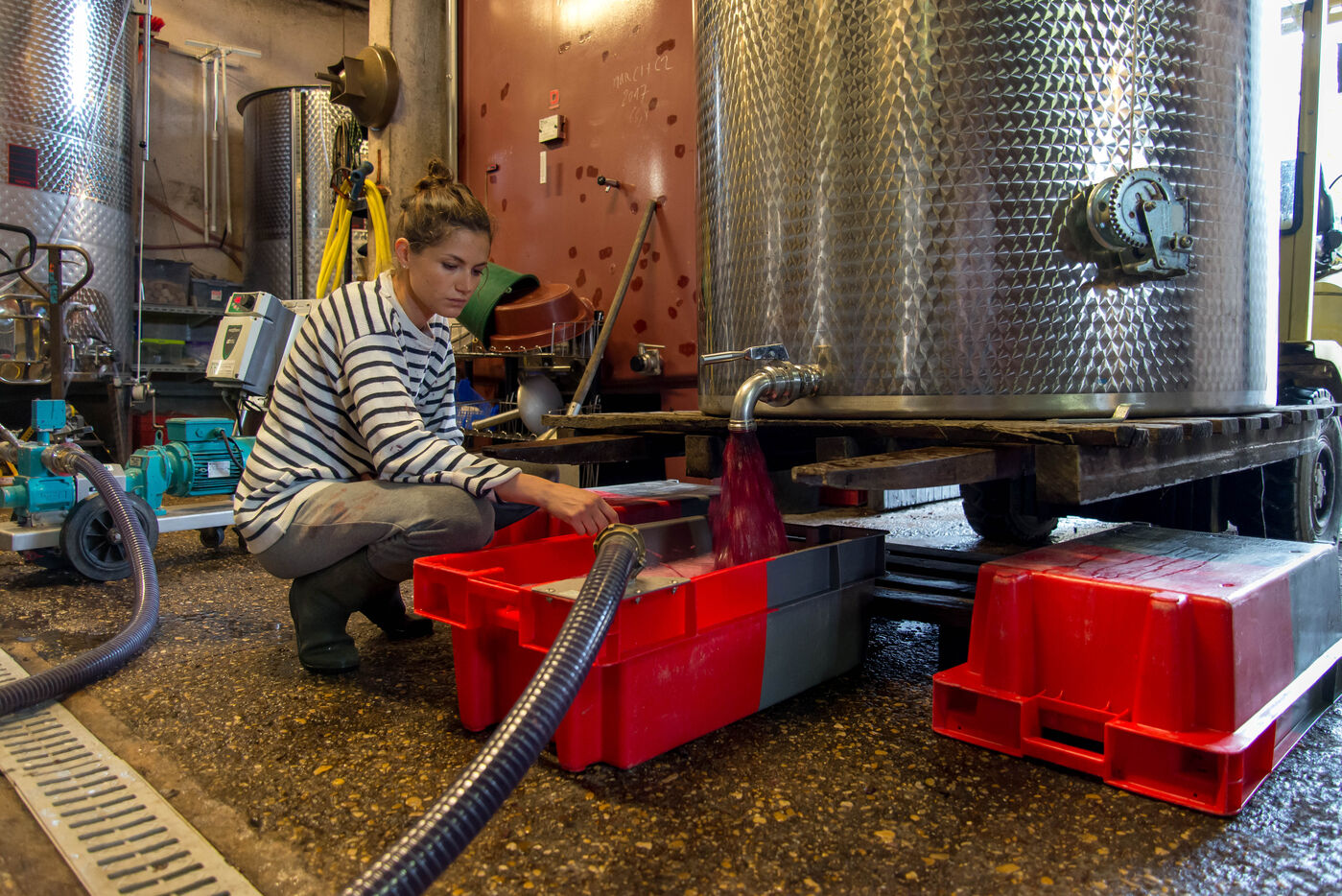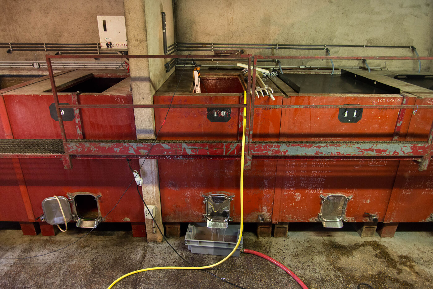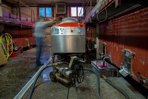 In the cuverie, the grapes are stored with their stalks, skins and seeds. The winemaker lets the grapes make their juice by pressing them with their feet - this is called pigeage, or punching down - to press down the cap of marc and protect it from oxidation. Several times a day, the winemaker monitors the winemaking process, measuring acidity and sugar levels, and especially the work of the indigenous yeasts. All this work is carried out according to the winemaker's choices, and the result he wishes to obtain. After several tastings, the winemaker decides to decant the wine and press it to obtain the final juice to suit his tastes.