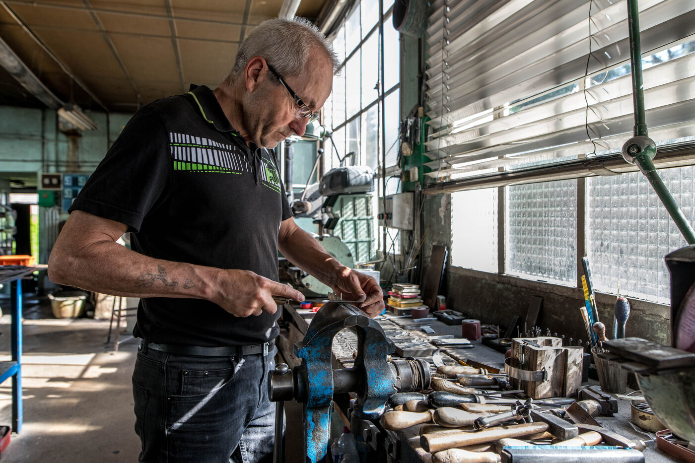 The Jacques Mongin cutlery workshop in Bieles, Haute-Marne, is renowned for the quality and beauty of its knives. La Coutellerie Mongin is one of the last remaining artisan workshops in France's Grand Est region. This small company has been in existence for over 60 years, perpetuating its unique know-how and the traditions of the Nogent region.