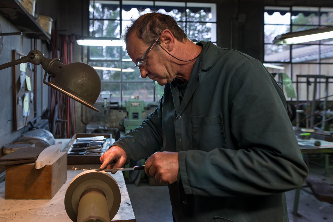 Franck Mansuy est le dernier en France à avoir le savoir-faire, l’outillage et les pièces permettant la restauration de couteaux anciens et d’argenterie. Il est à Biesles, village de Haute-Marne ayant une grande tradition de coutelier.