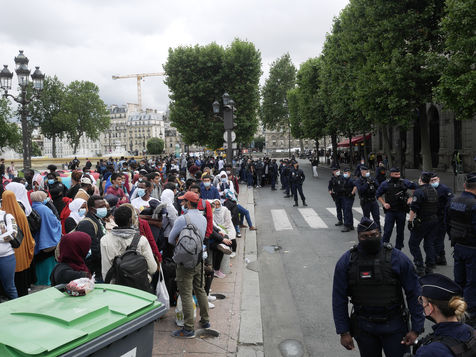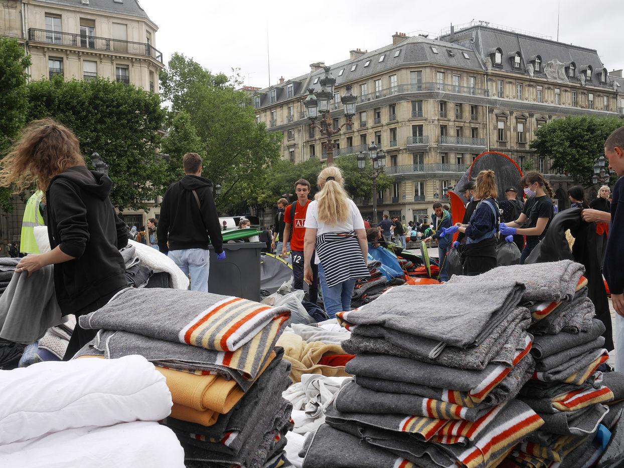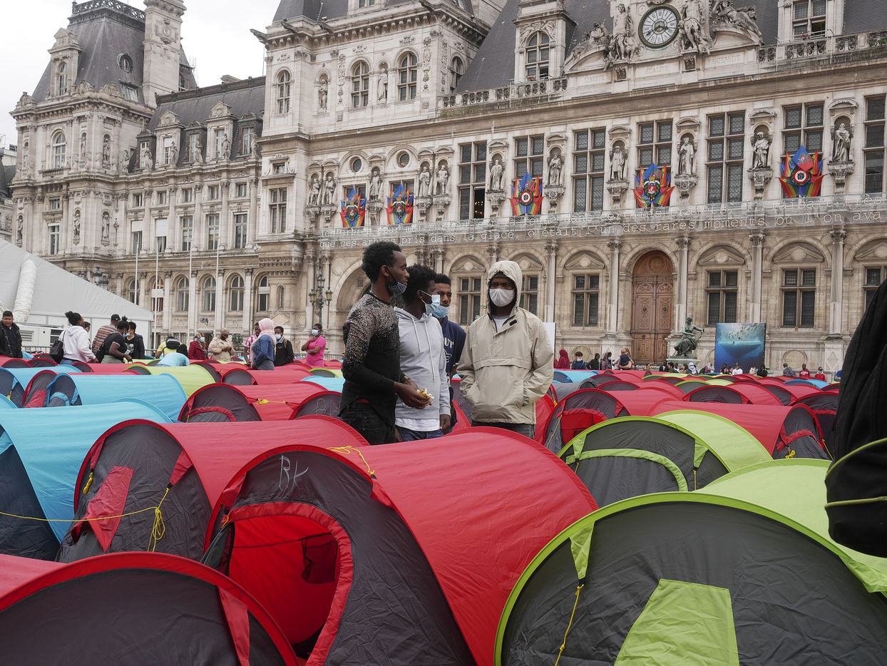 Evacuation of a migrant camp from the square in front of the city hall in Paris