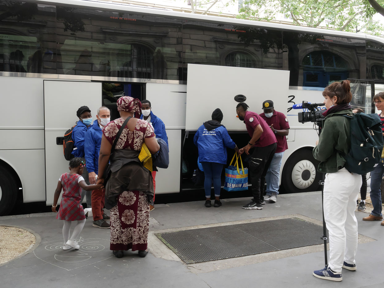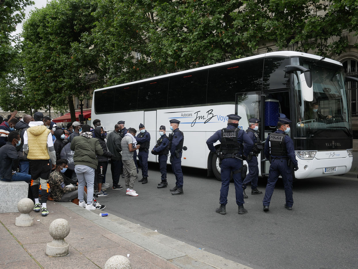 Evacuation d'un campement de migrants du parvis de l'hotel de ville de Paris