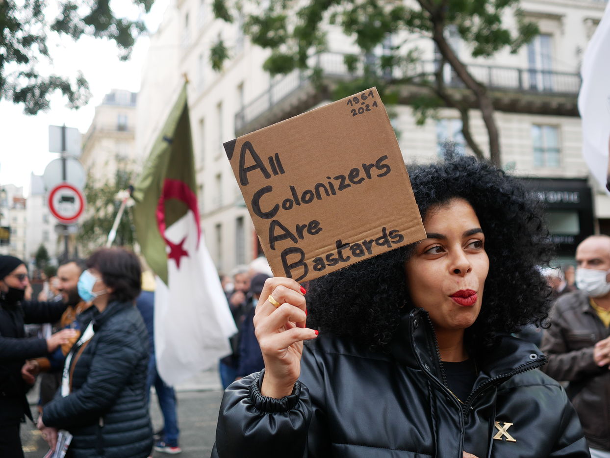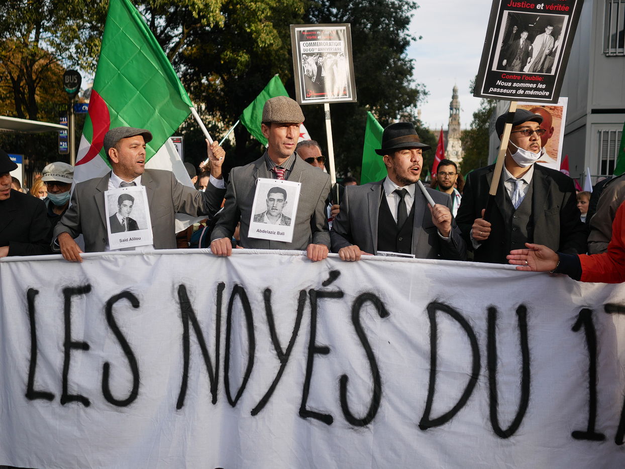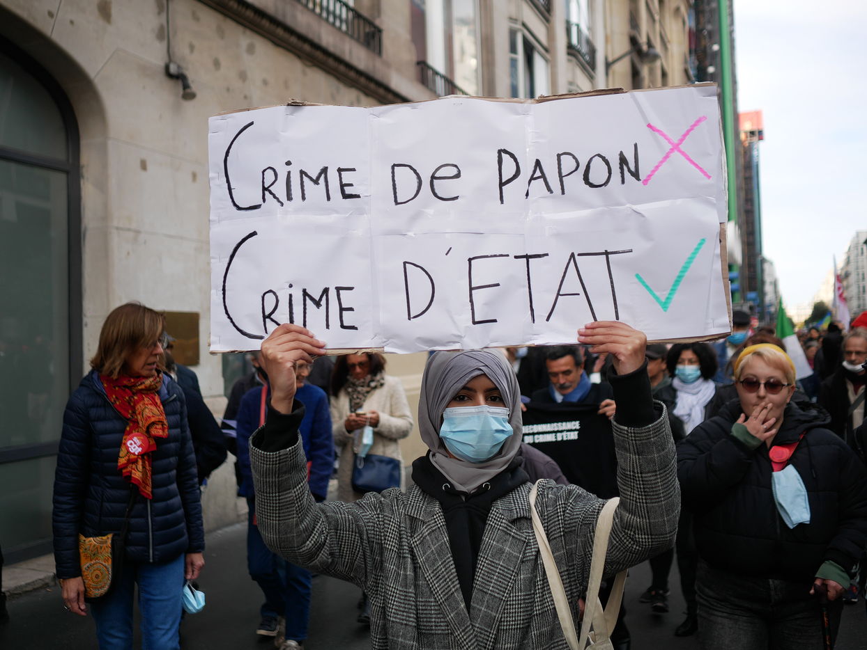 As a tribute to the "French Muslims of Algeria" murdered by the police in 1961 in Paris, the demonstrators demand that this event be officially recognised as a state crime.