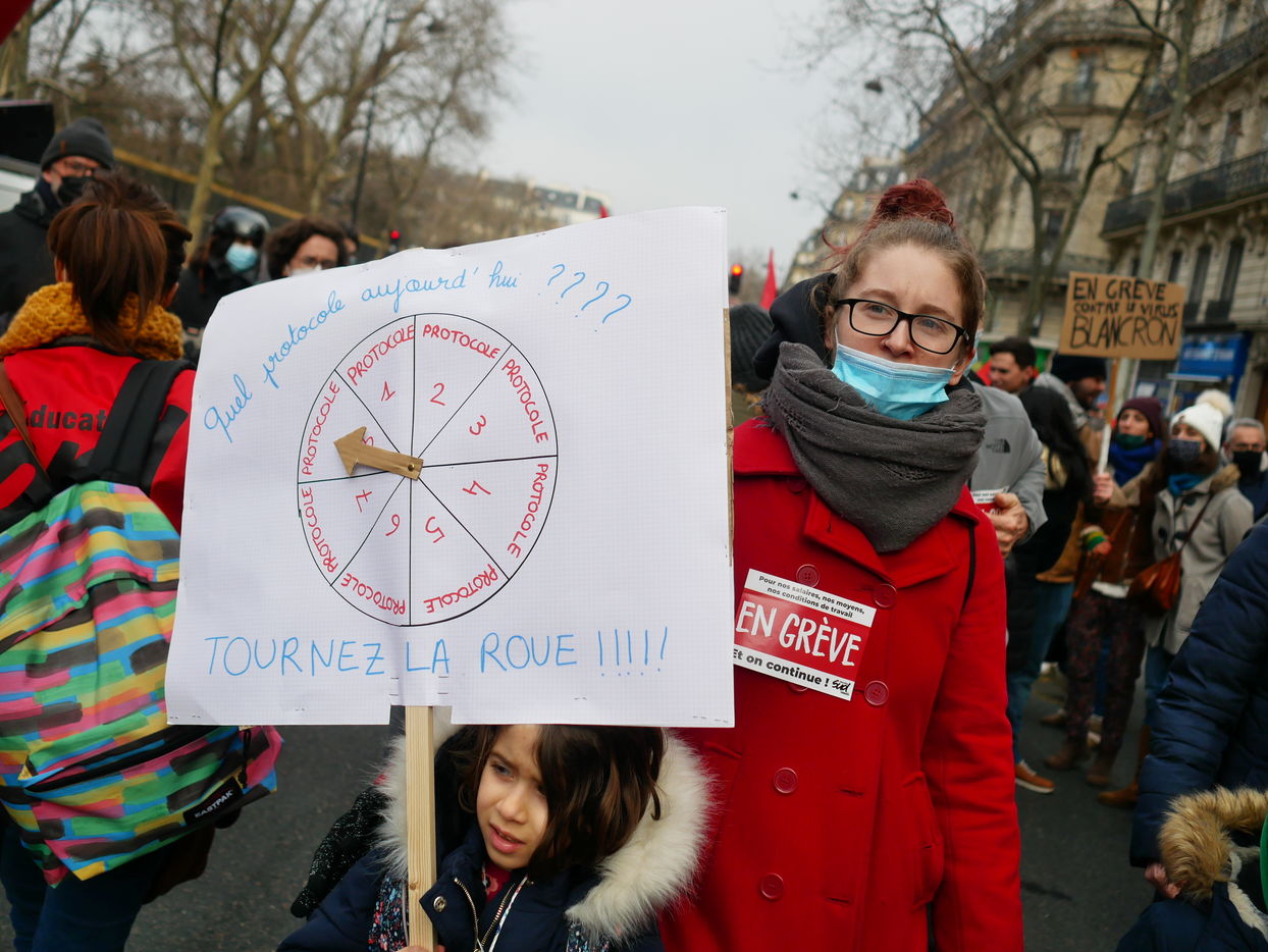 Les enseignants manifestent à Paris contre le protocole sanitaire dans les ecoles.