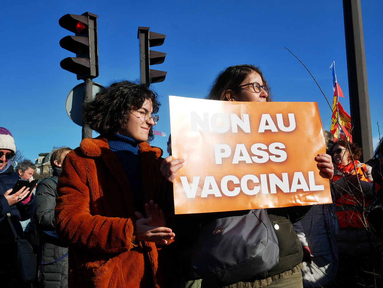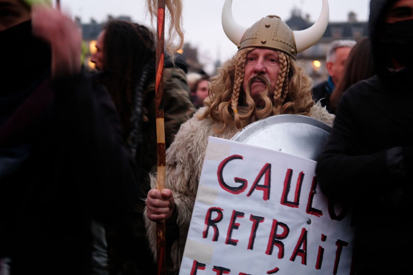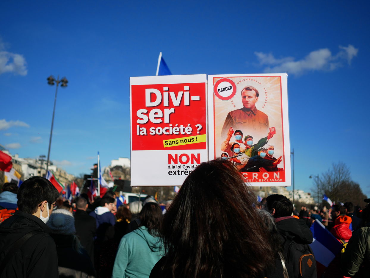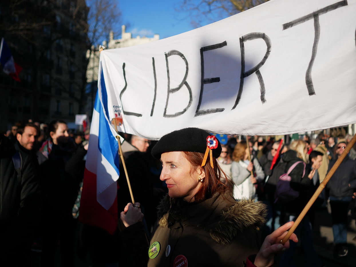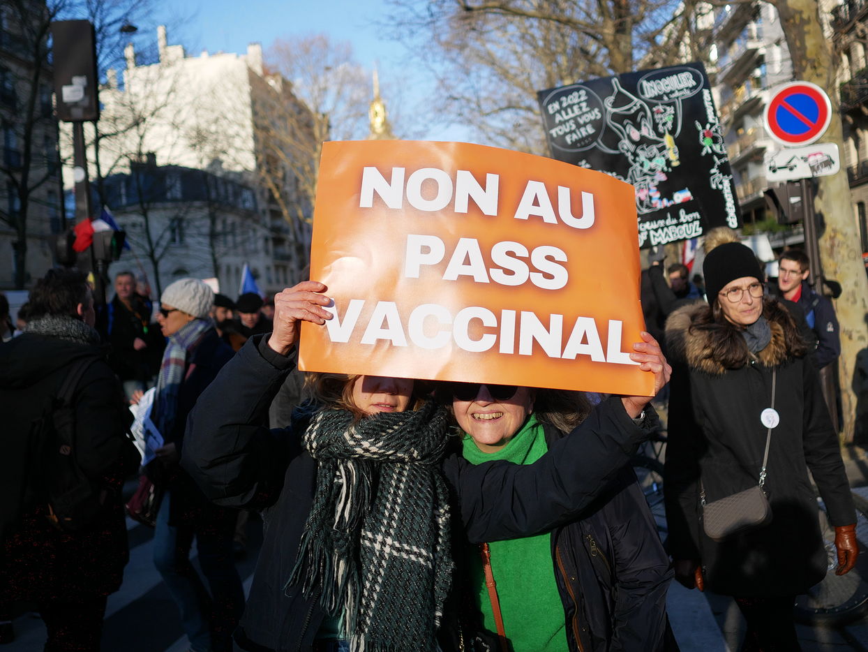Florian Philippot and the Patriots demonstrate in Paris to protest against the vaccination pass which restricts the freedom of people refusing a vaccination against covid-19.