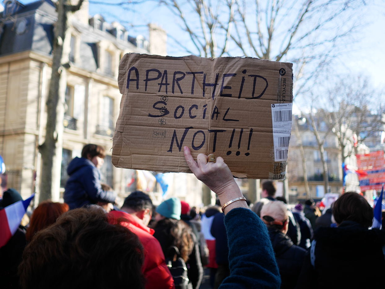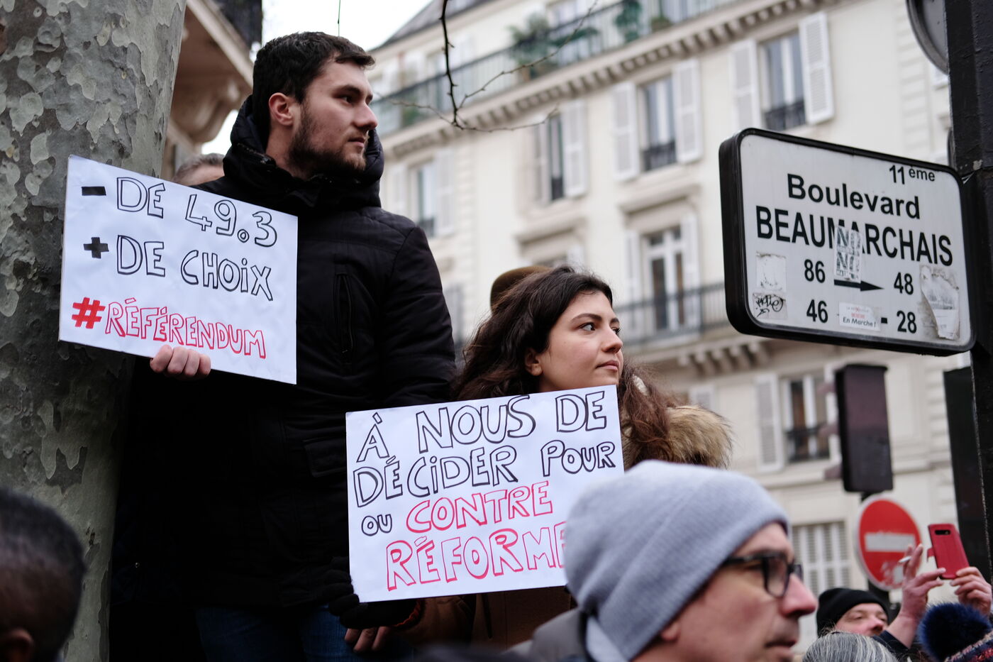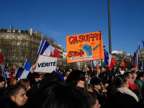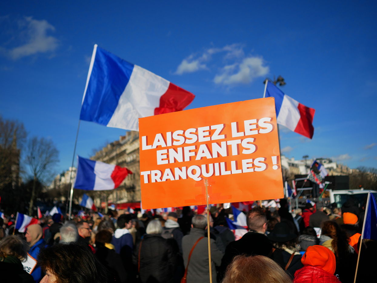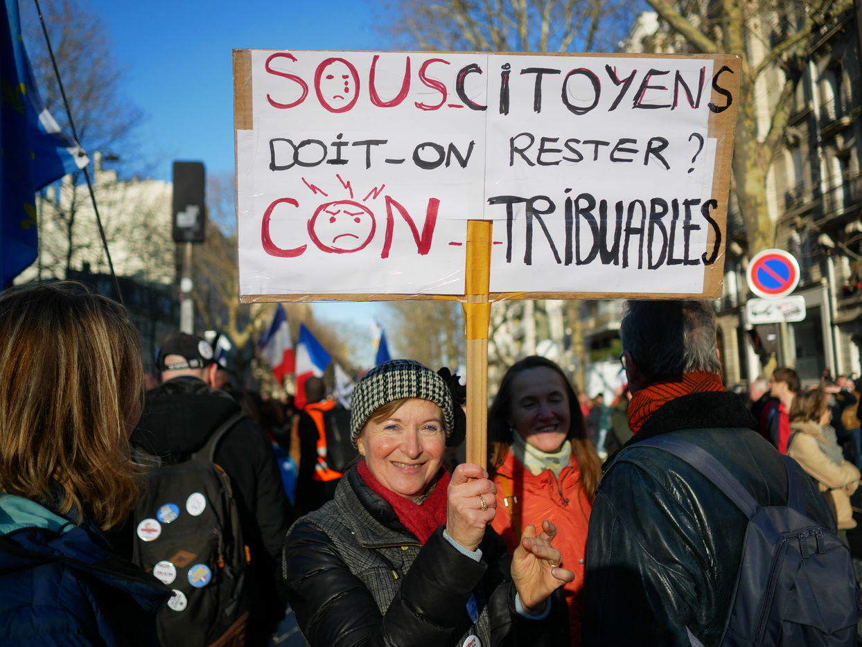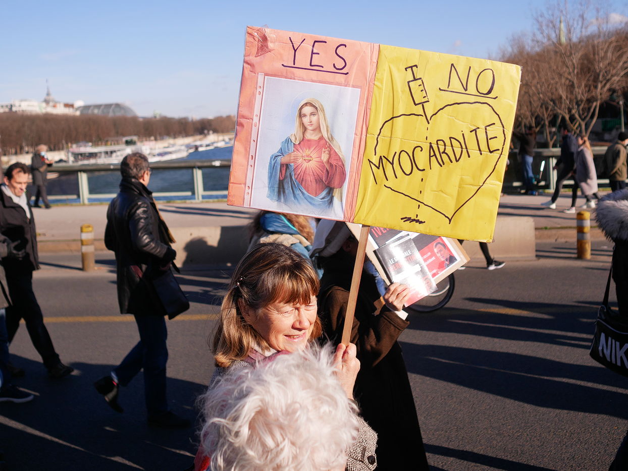 Florian Philippot and the Patriots demonstrate in Paris to protest against the vaccination pass which restricts the freedom of people refusing a vaccination against covid-19.