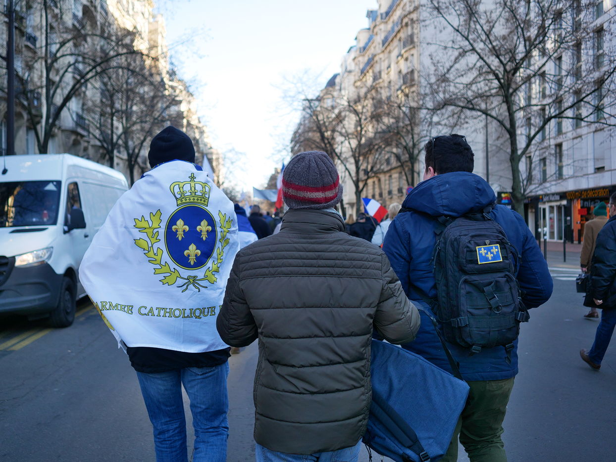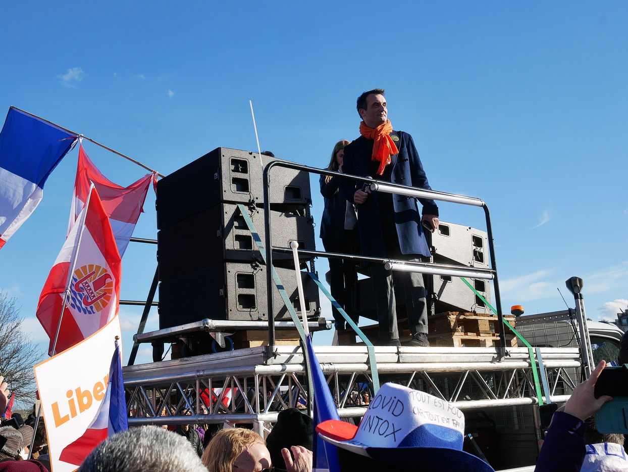 Florian Philippot et les Patriotes manifestent à Paris pour protester contre le pass vaccinal qui restreint les libertes des personnes refusant une vaccination contre le covid-19.