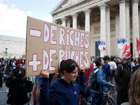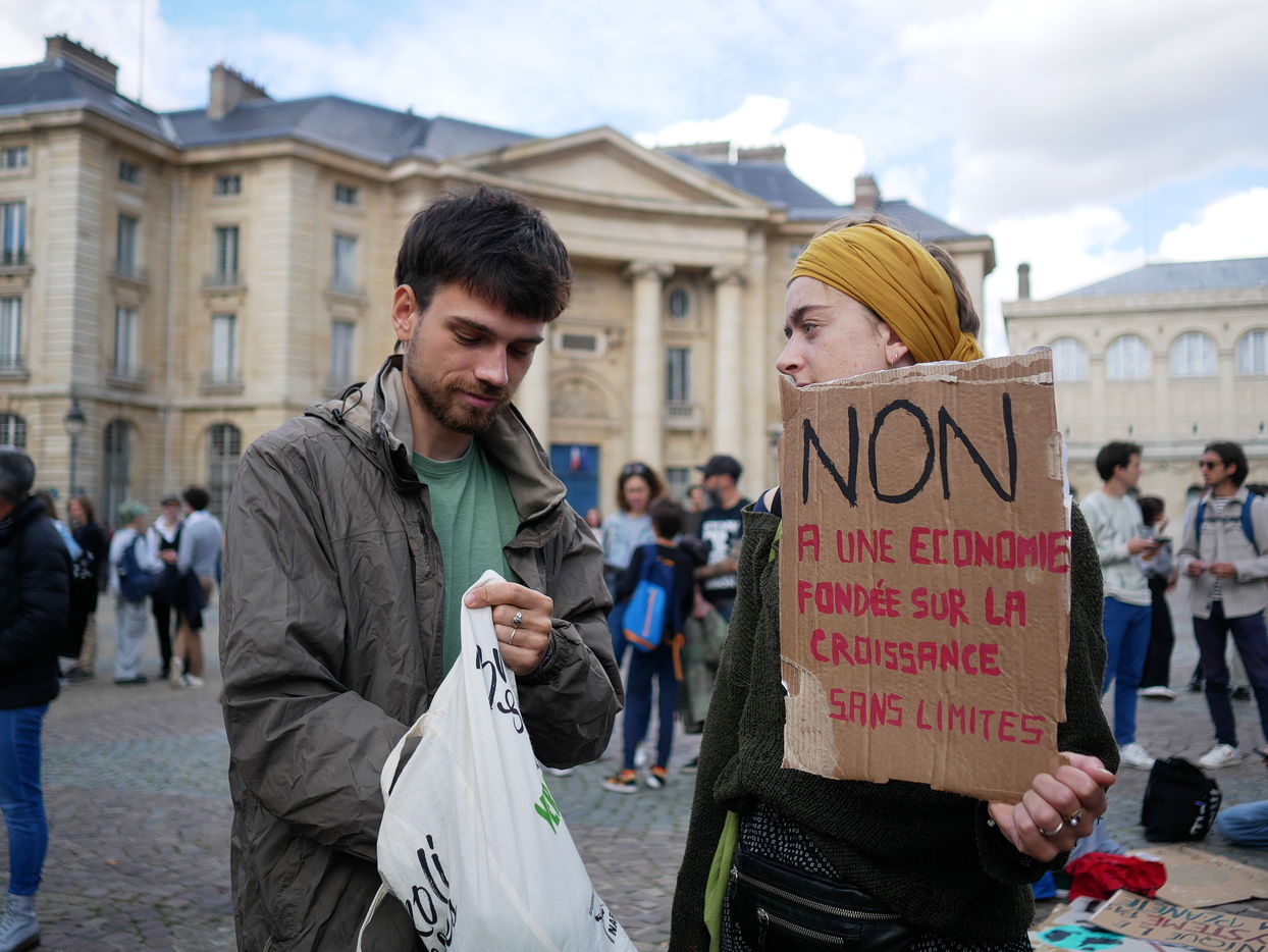 Journée de mobilisation pour la justice climatique à l'appel d'organisations de jeunesse, avec pour revendications « les gens et pas le profit » ou « stop a la publicité dans l'espase public »