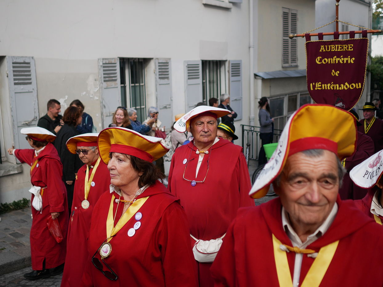 Accompanied by the inhabitants of the 18th district, wine and food brotherhoods walk the streets of Montmartre from the Clos Montmartre vineyards to the 18th district town hall.