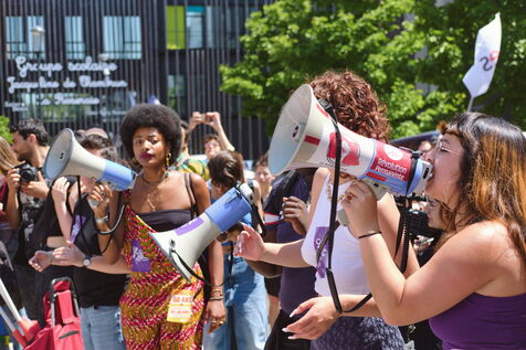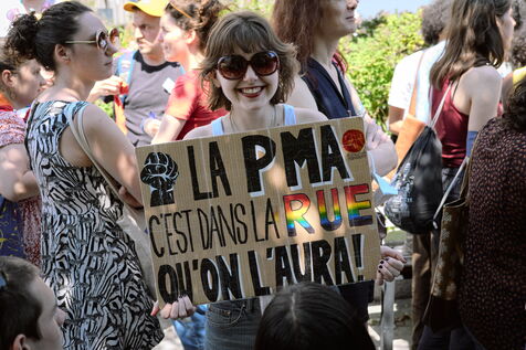 Marche des fiertés dans les rues de Saint-Denis pour faire entendre les revendications des LGBTQI+ de quartiers populaires, notamment l'égalité d'accès à la PMA.