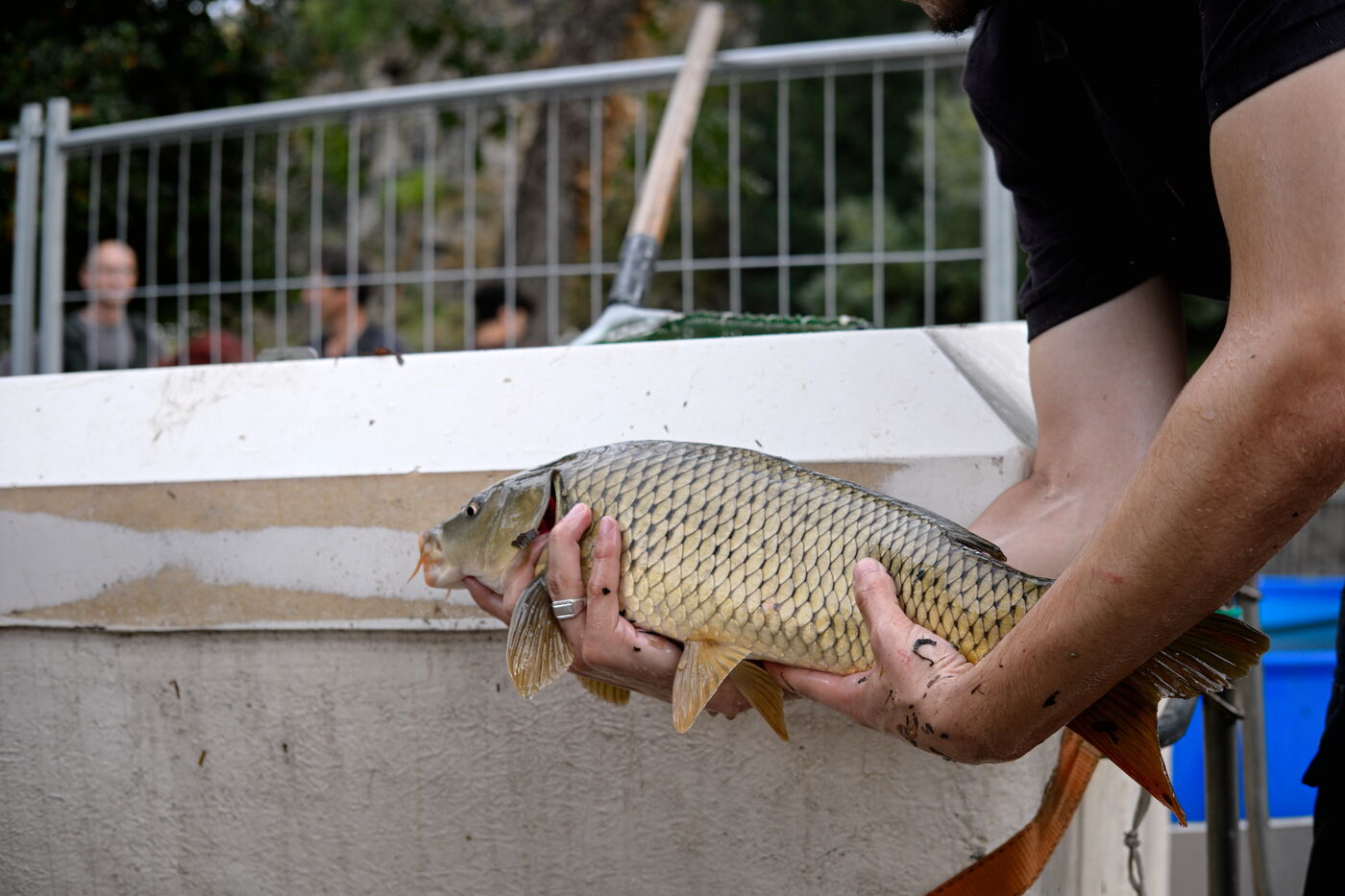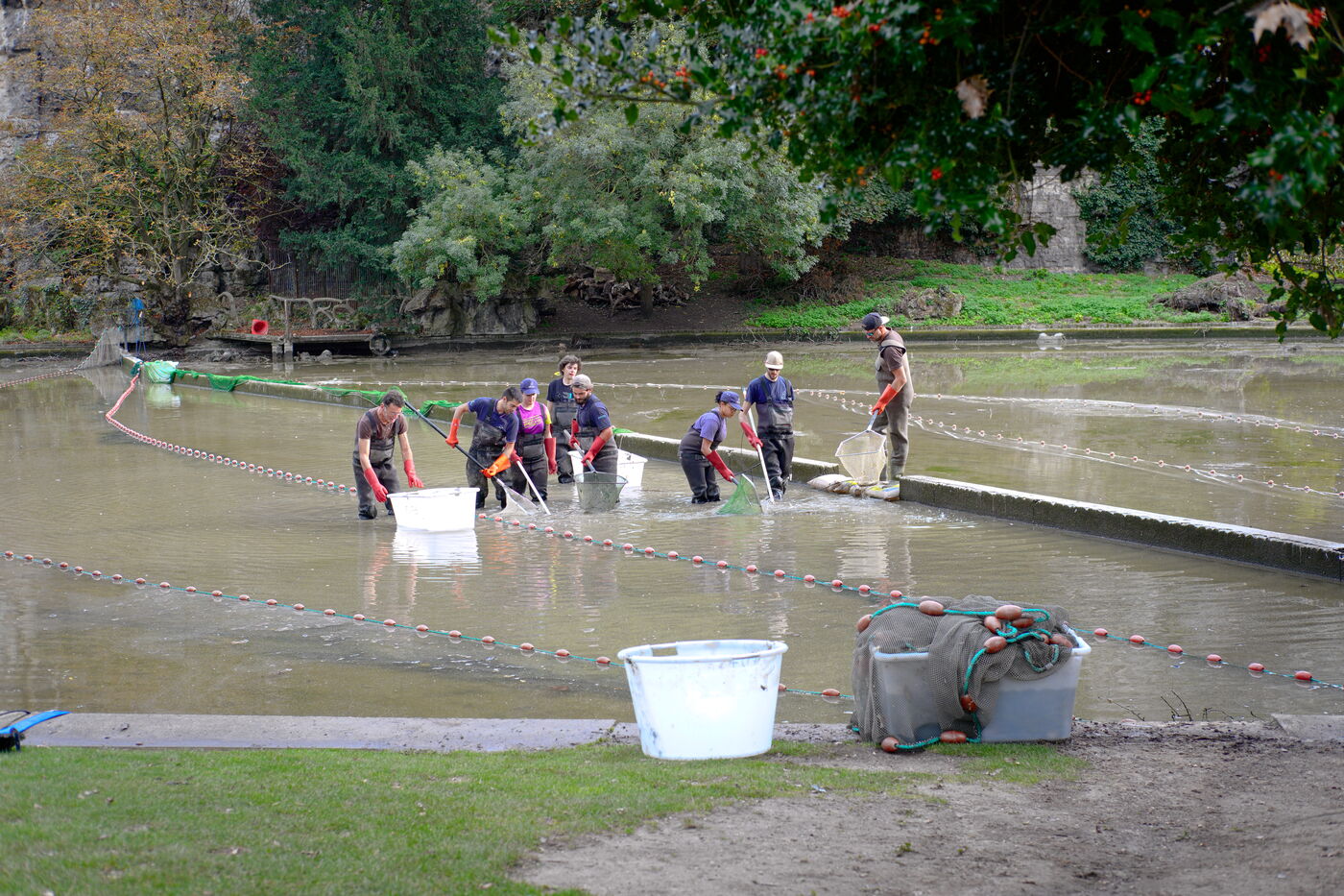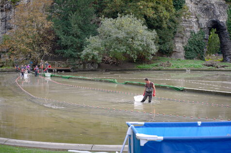 Back-up fishing to clean up the Buttes Chaumont lake. The fish will be released into the Ourcq canal and Parisian lakes.