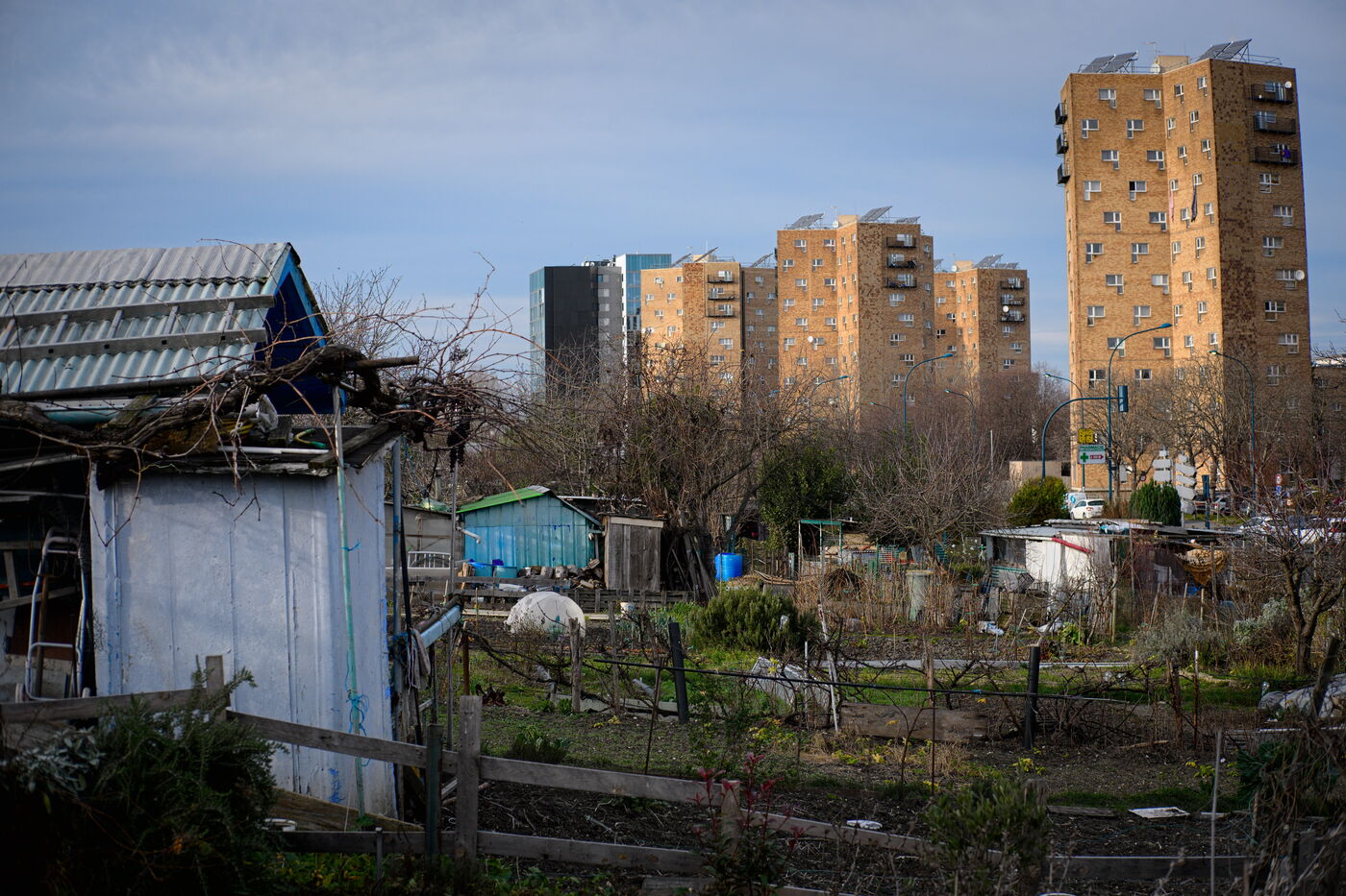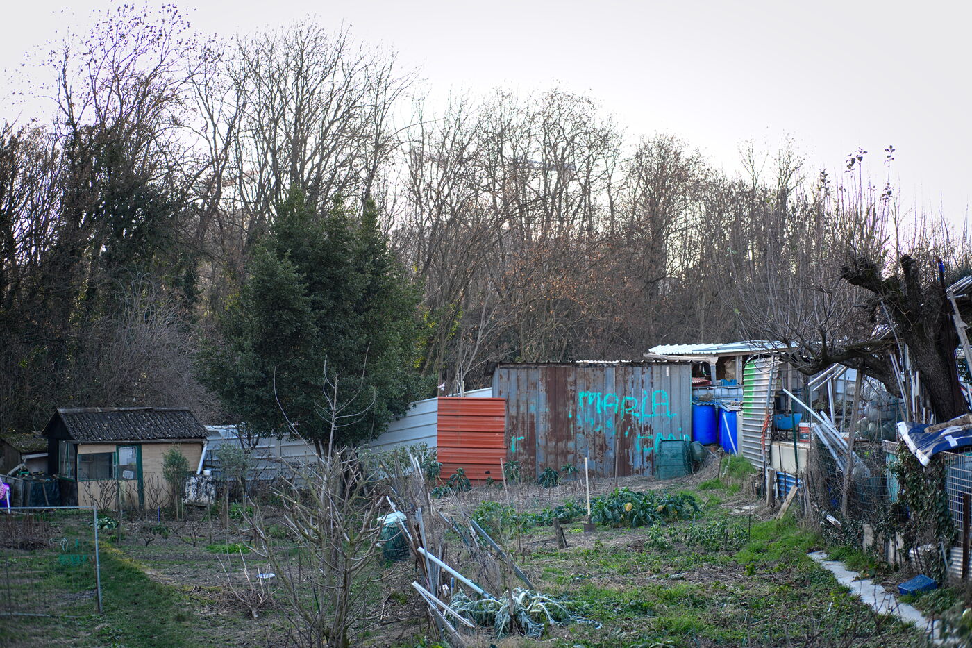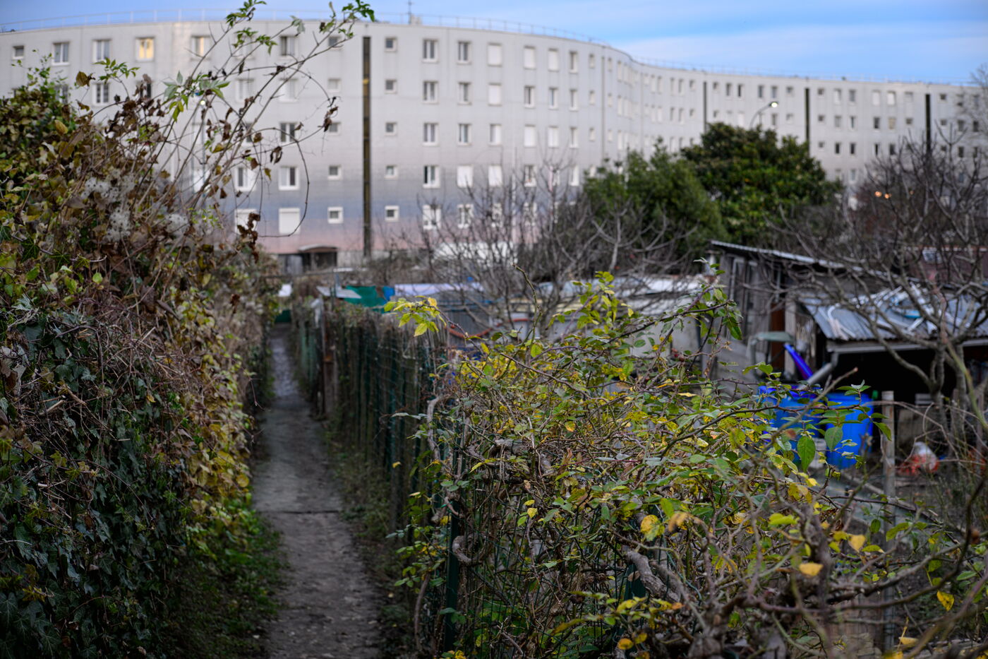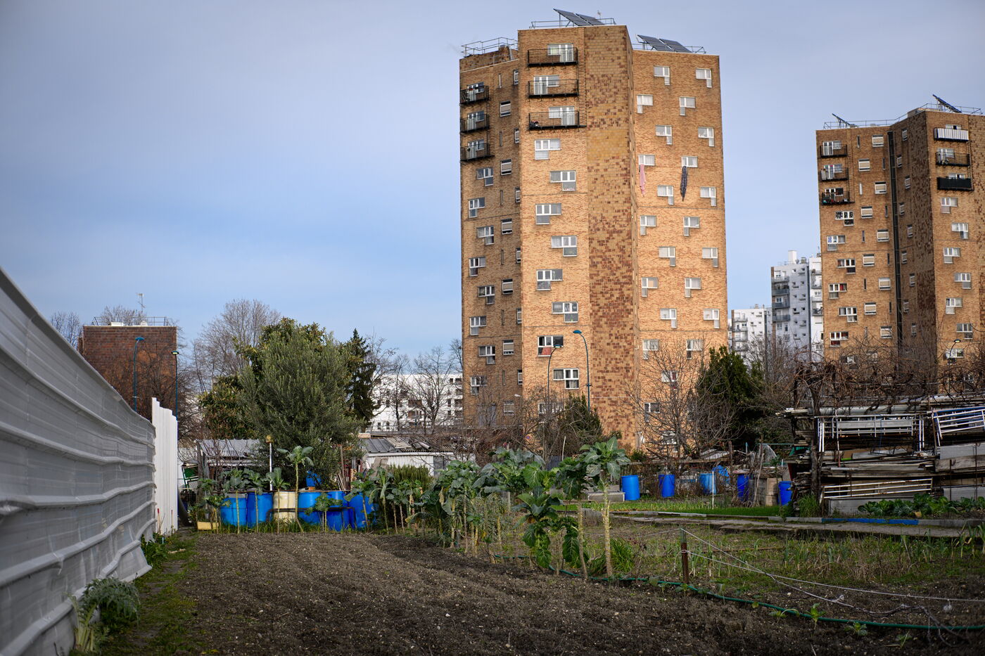 Cultivated for over a century, the Vertus allotments are located two kilometres outside Paris, between the moats of the Fort d'Aubervilliers and the Courtillières housing estate. In 2022, the twenty plots of land that had been destroyed to build the solarium for the 2024 Olympics water sports centre were finally restored to their original state, following action by three gardeners and the "Jardin à défendre" collective, who obtained a court order to halt the works. Today, this fertile land is once again under threat from a construction project: a station for the Grand Paris Express and a district of offices and hotels.