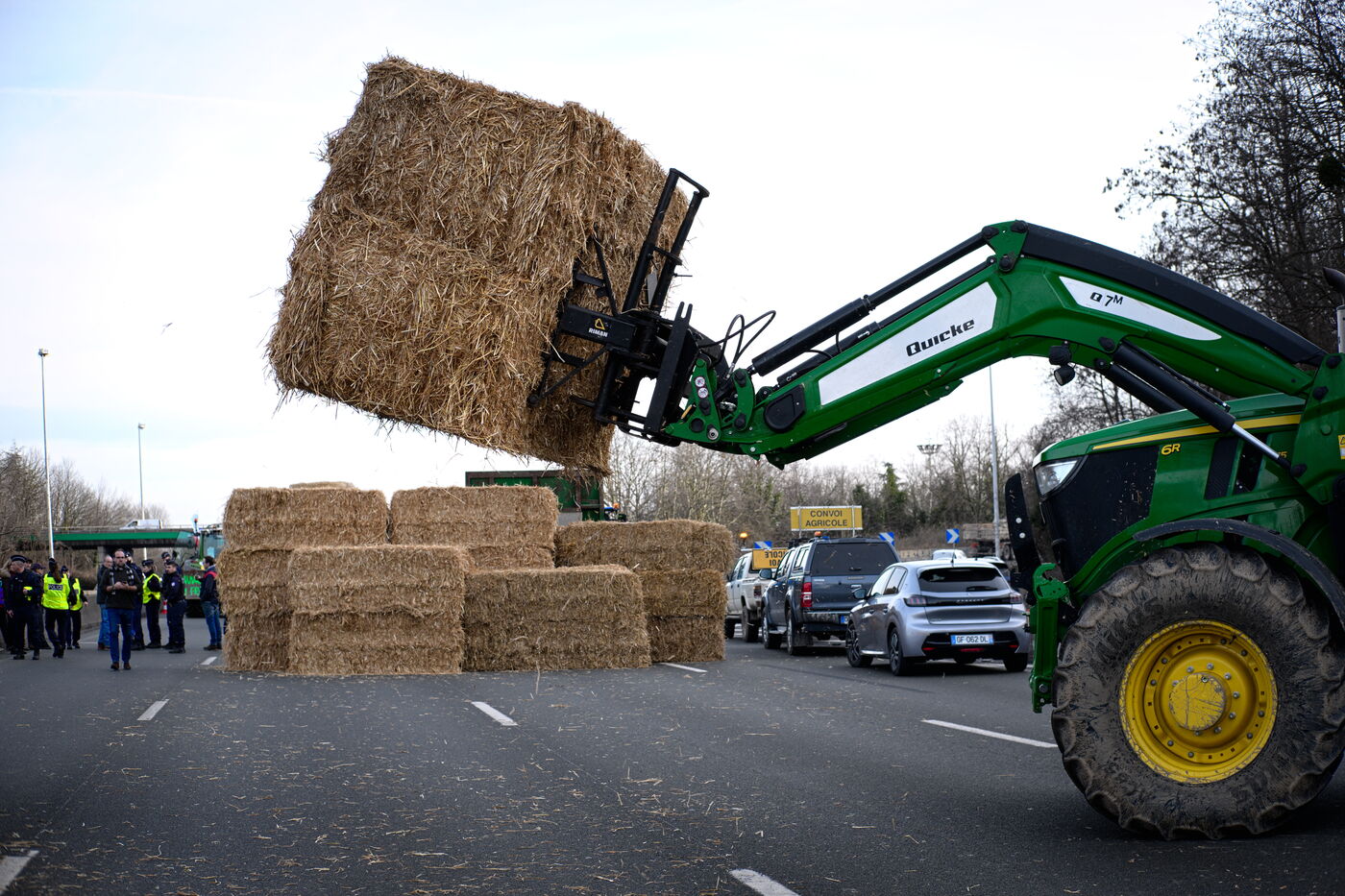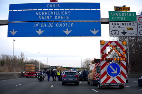 Farmers block the motorway to Paris