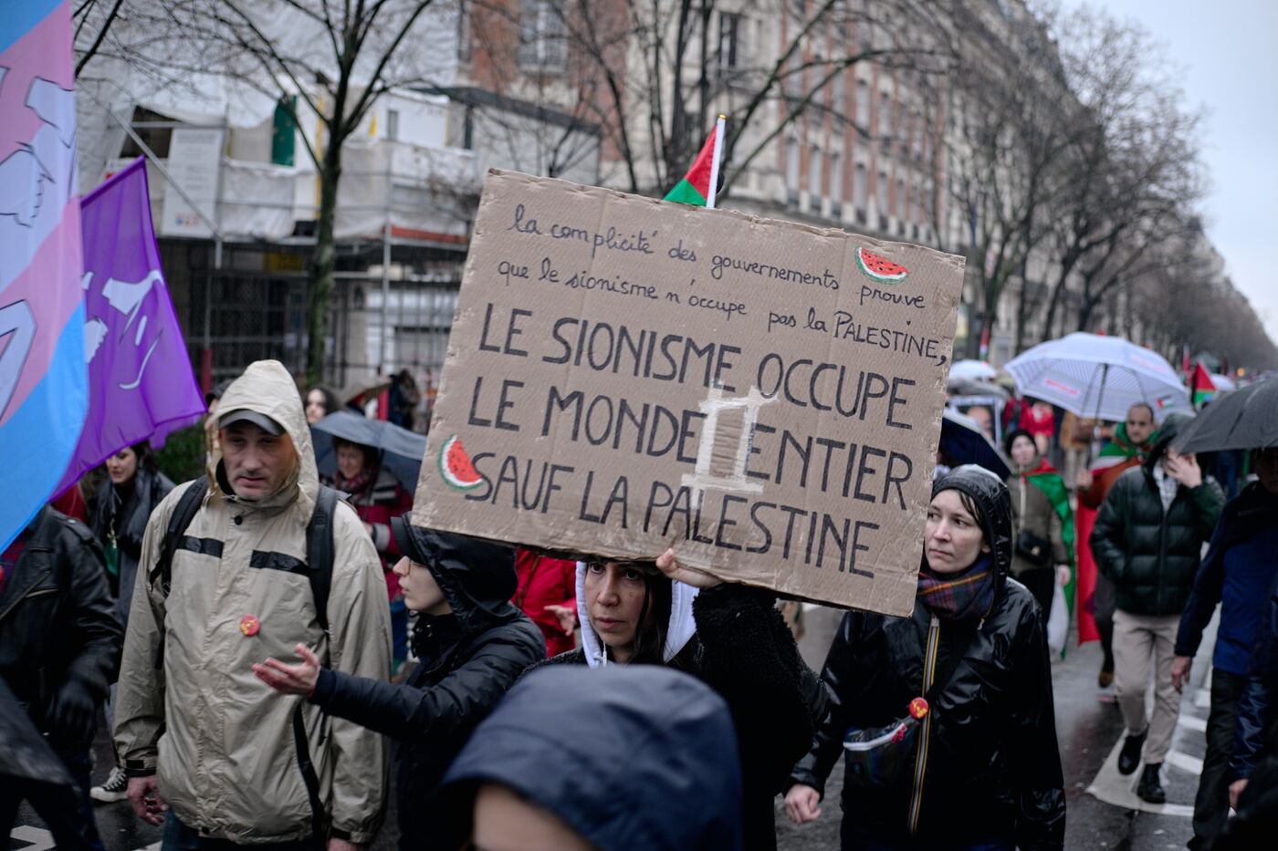 Demonstration in support of the Palestinian people and against the extreme right and its influence on the French government.