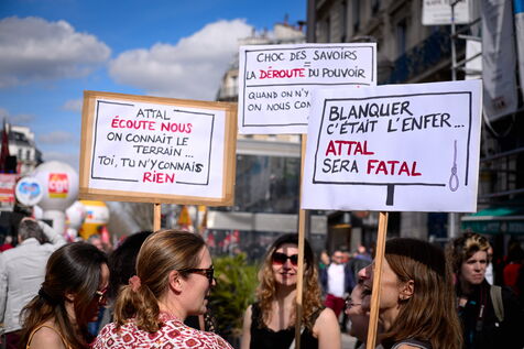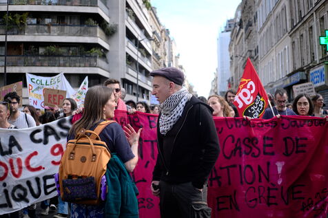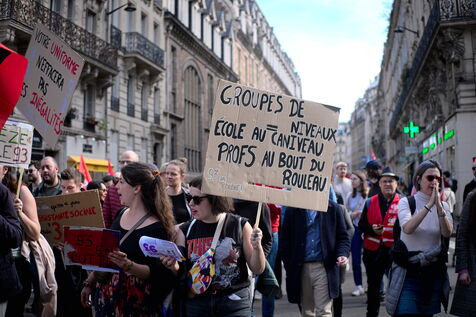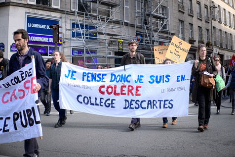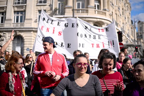 A l'appel des principaux syndicats , manifestation des enseignants et du personnel éducatif pour reclamer une revalorisation des salaires, l'abandon les groupes de niveaux et une hausse du budget alloué à l'Education nationale.