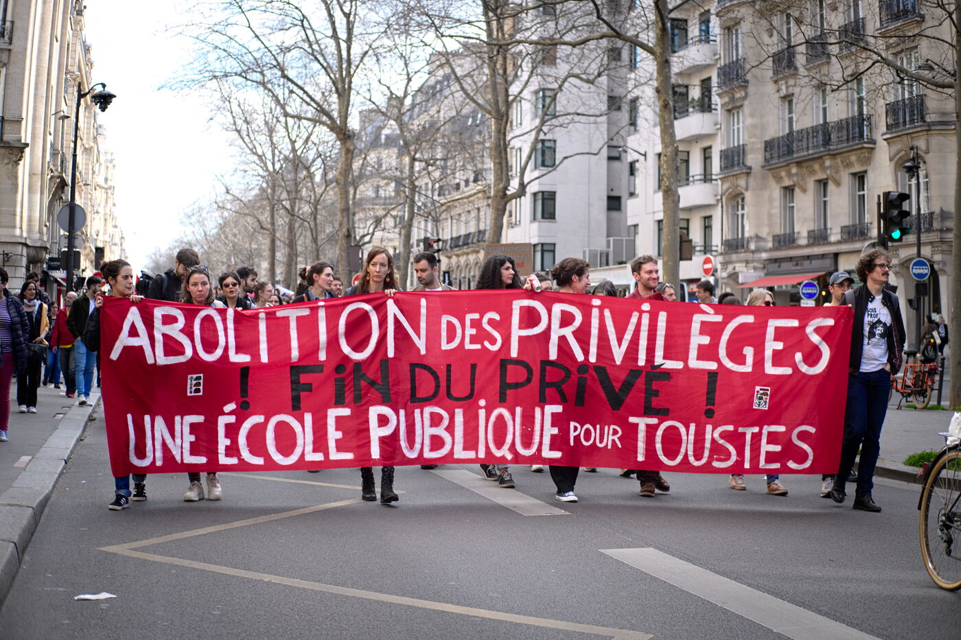 On the call of the main trade unions, a demonstration by teachers and educational staff to demand an increase in salaries, the abandonment of the level groups and an increase in the budget allocated to national education.