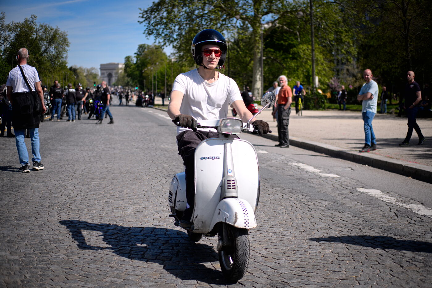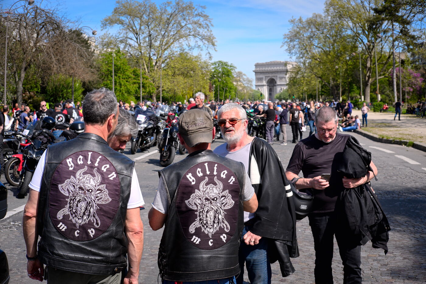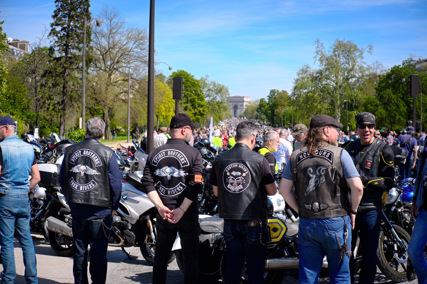 Demonstration against the introduction of compulsory roadworthiness tests for motorbikes, called by the Fédération française des motards en colère (French Federation of Angry Motorcyclists).