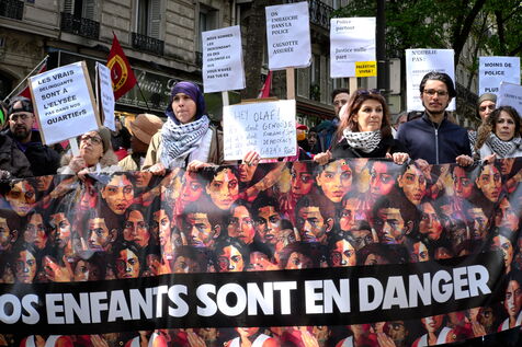 Marche contre le racisme, l?islamophobie et pour la protection de tous les enfants, à l?appel de cinquante et une organisations parmi lesquelles La France insoumise, le Nouveau Parti anticapitaliste, Attac, Solidaires et l?Observatoire national des pratiques et des violences policières.