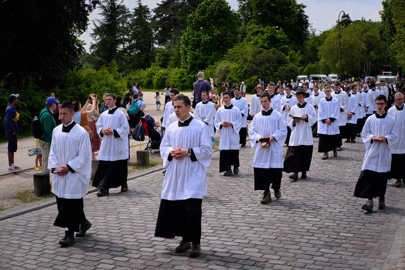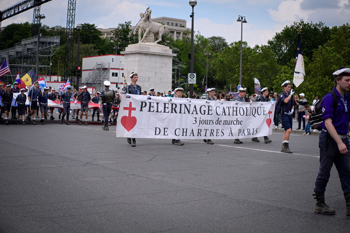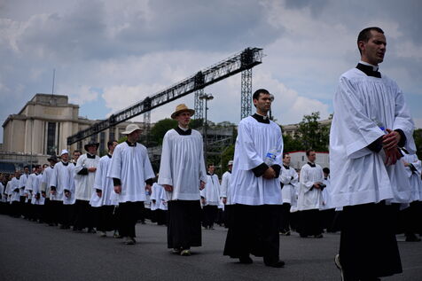Pentecost pilgrimage of the Priestly Fraternity of St Pius X, a fundamentalist and nationalist branch of Catholicism at odds with the Vatican. The pilgrims walked between Chartres and Paris, where they were not allowed to celebrate Mass at Notre-Dame Cathedral.